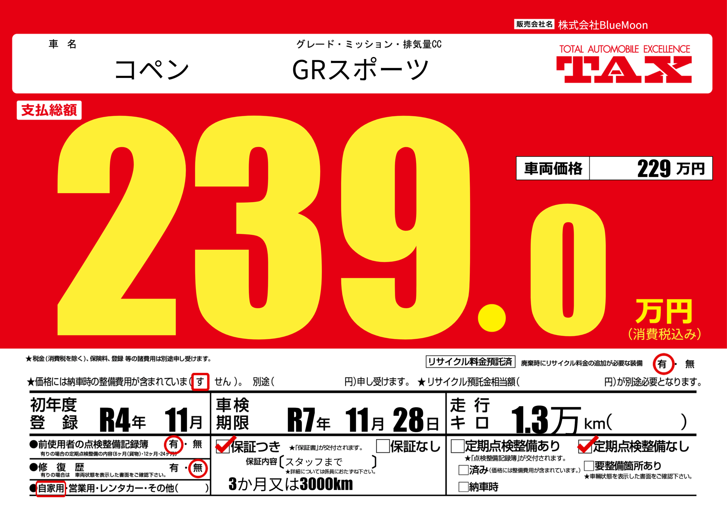 | 車検制限 | R7年 11月 28日 | ||