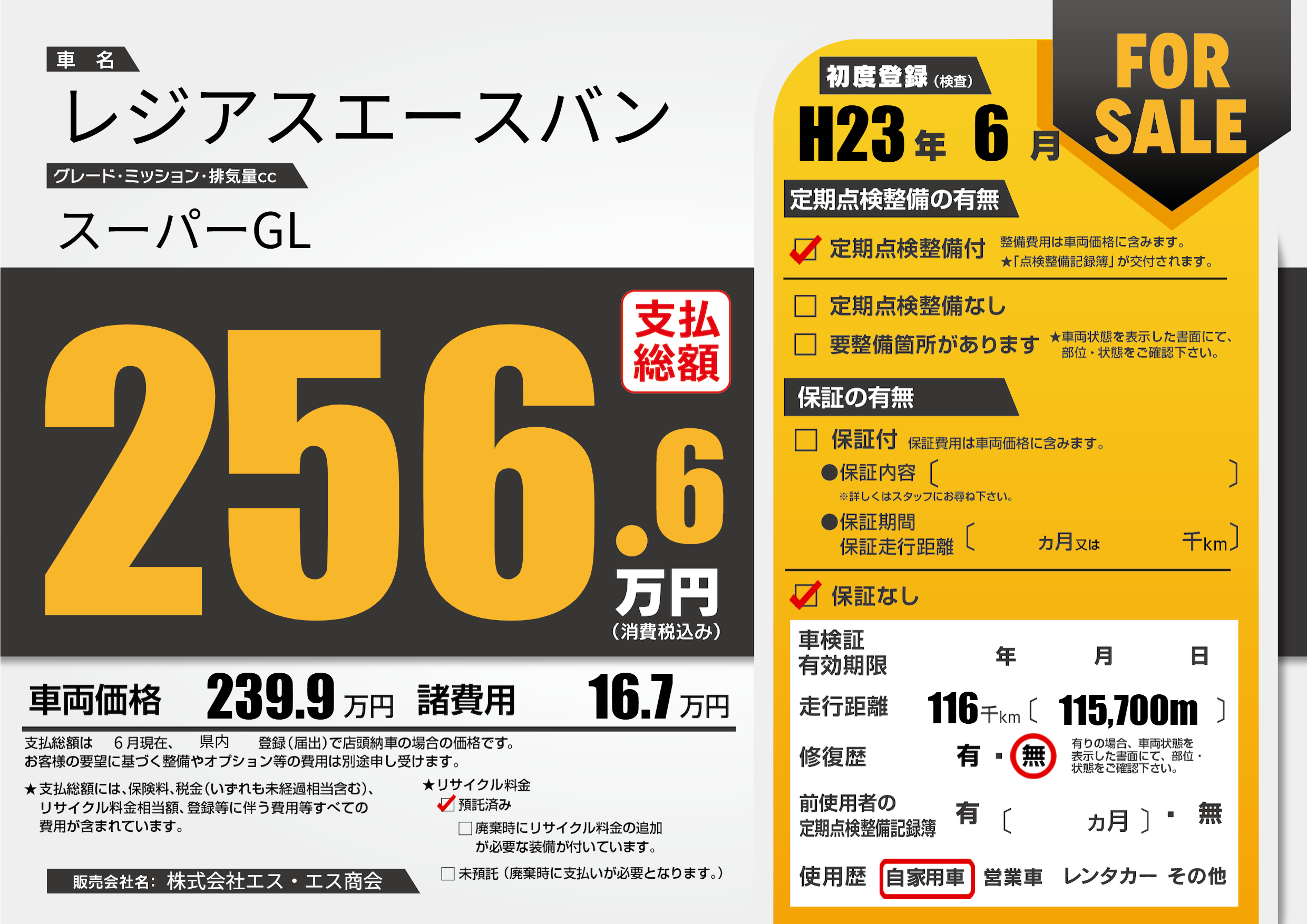| 走行キロ | 11.6万km | 初年度登録 | H23年6月 |