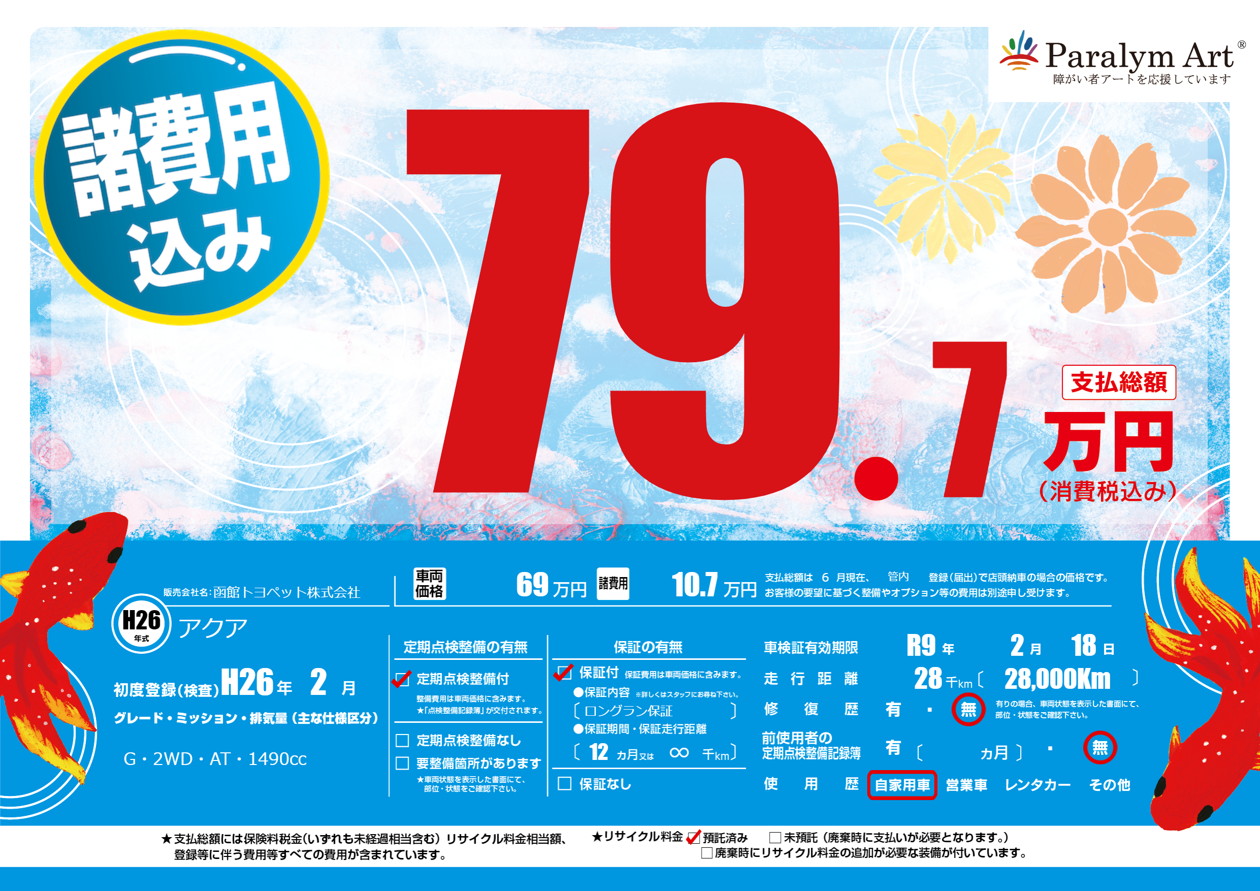| 走行キロ | 2.8万km | 初年度登録 | H26年2月 |