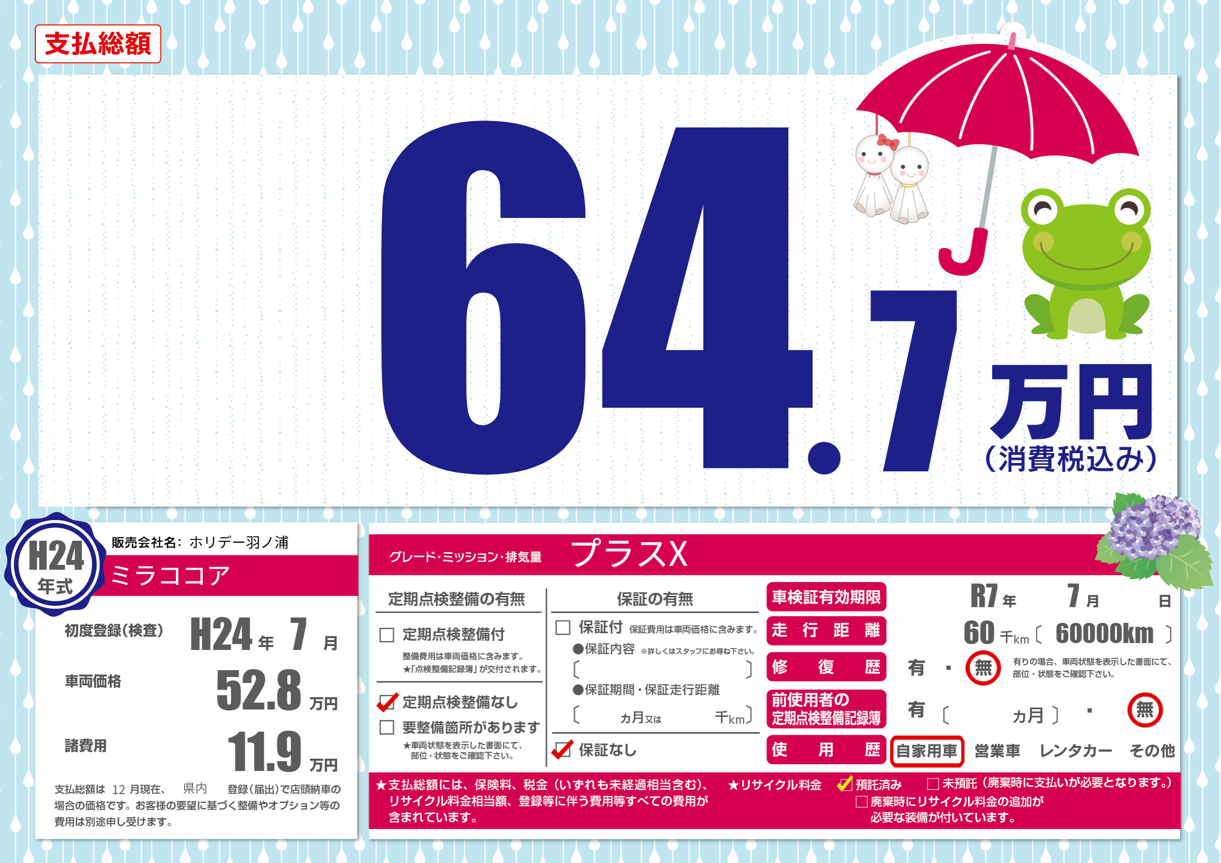 | 車名 | ミラココア | グレード ミッション 排気量 |