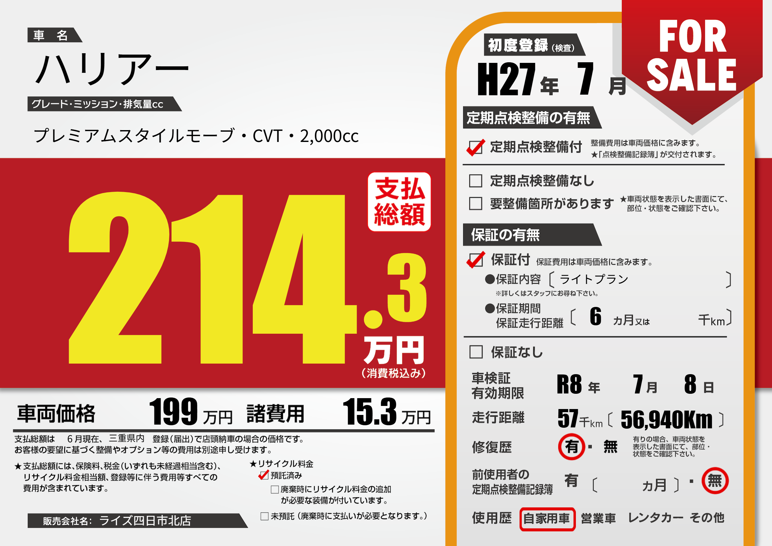 | 初年度登録 | H27年7月 | ||