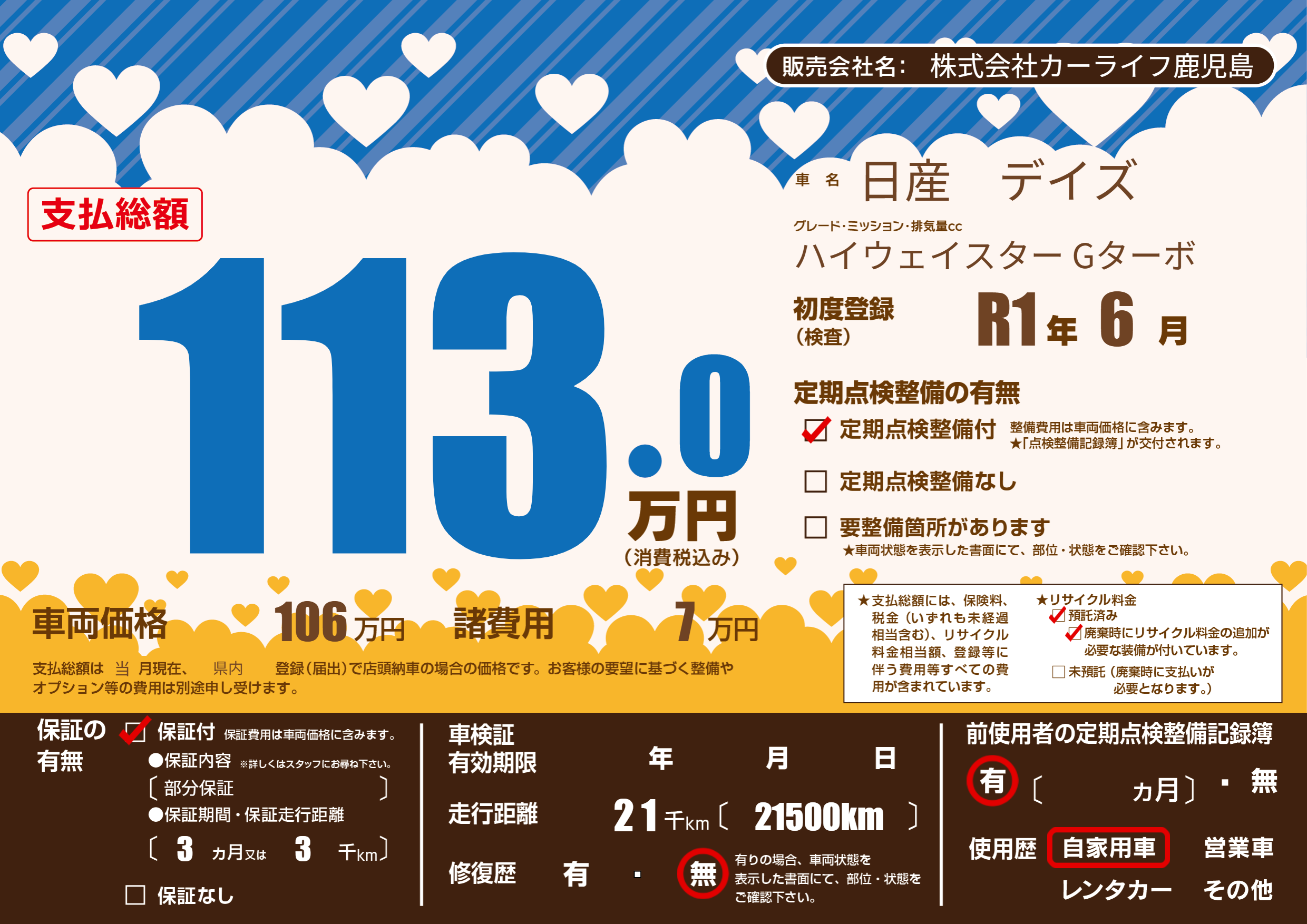 | 走行キロ | 0.2万km | 初年度登録 | R1年6月 |
