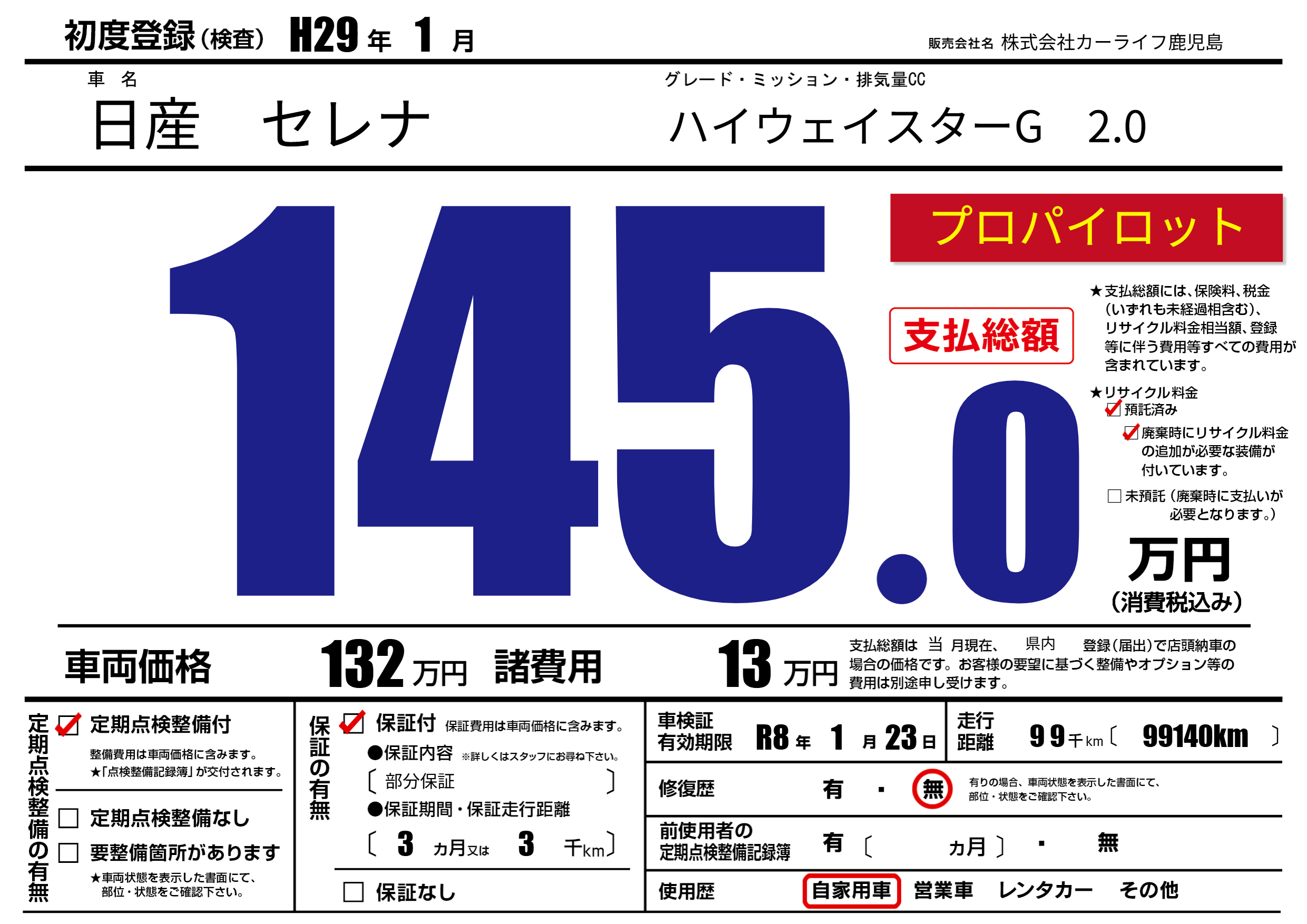 | 初年度登録 | H29年1月 | ||