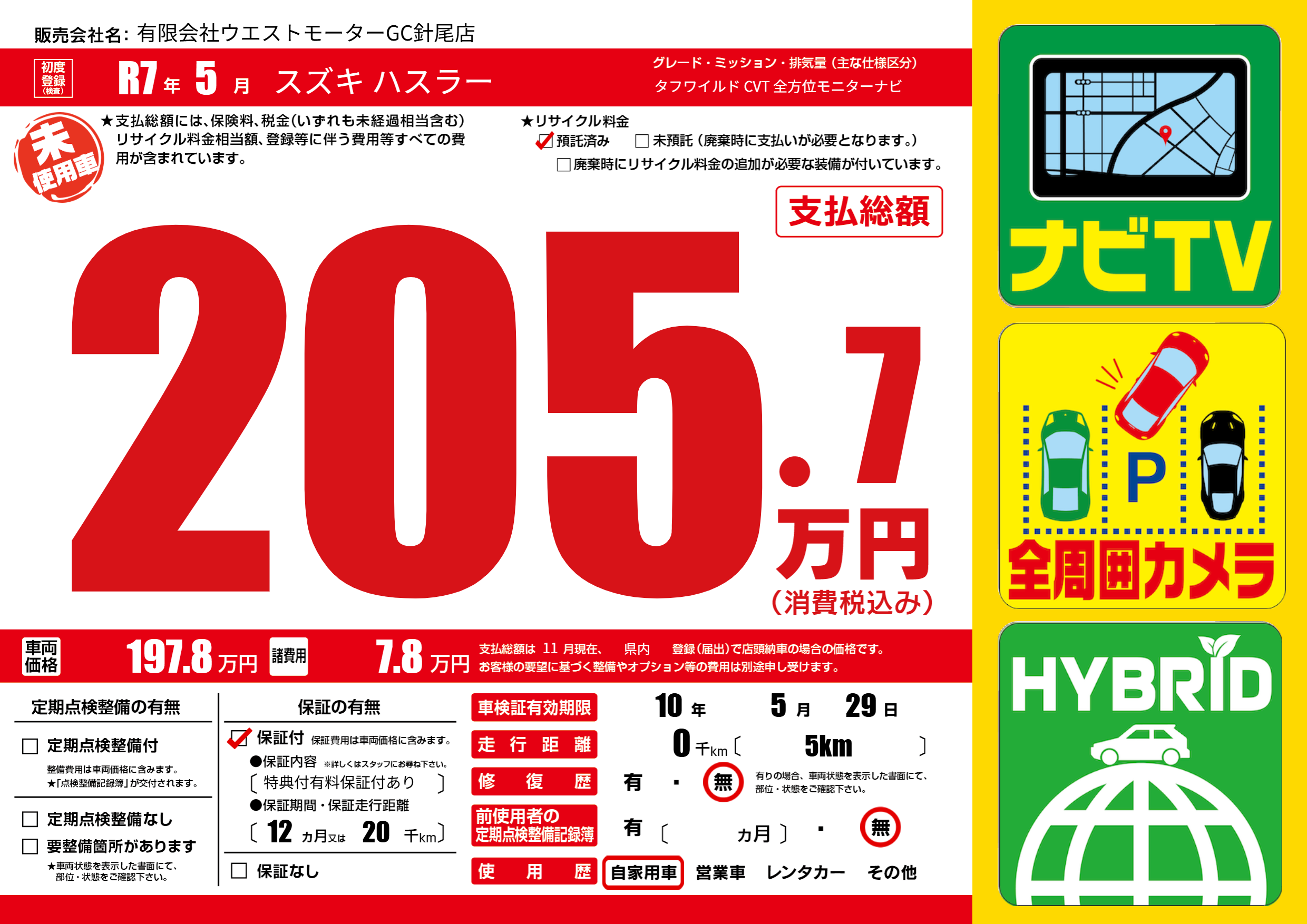 | 走行キロ | - | 初年度登録 | R7年5月 |