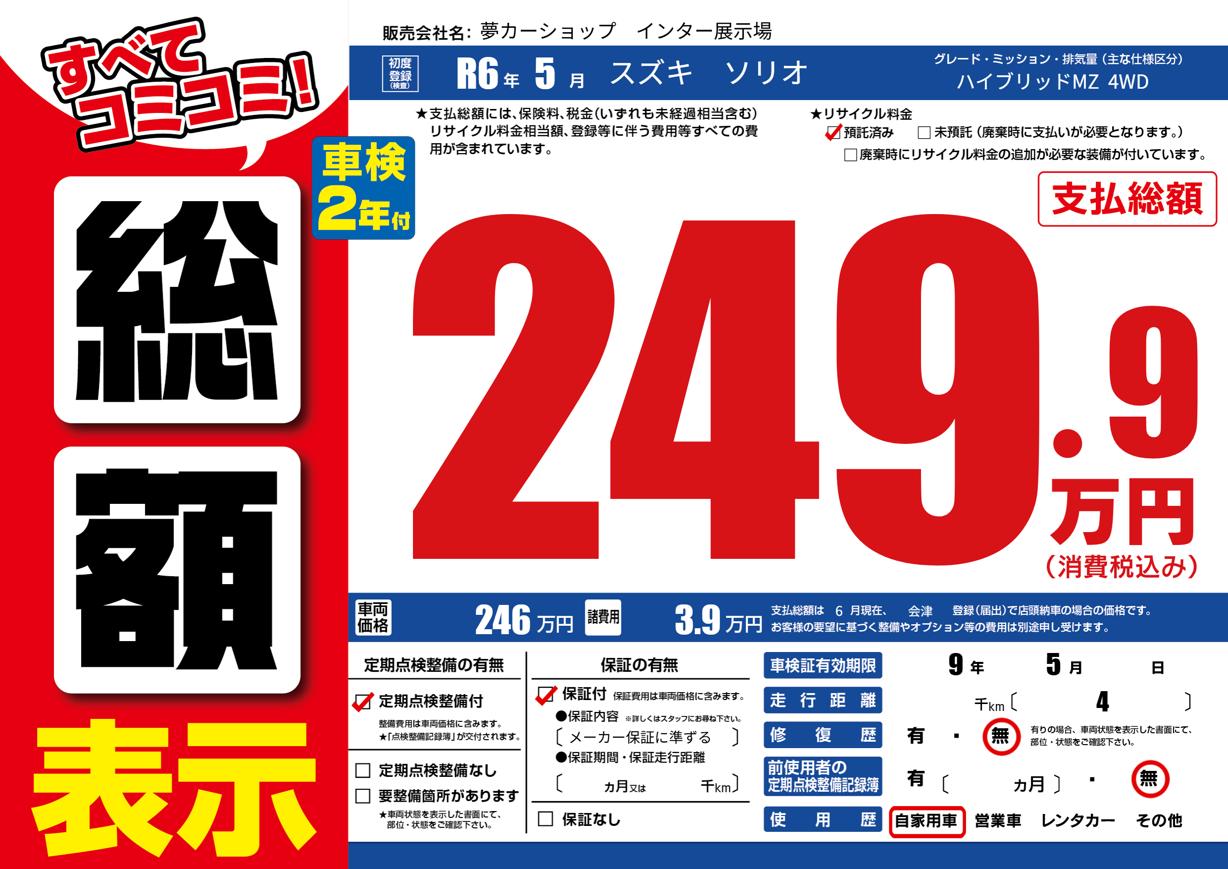 保証付き 保証内容(メーカー保証に準ずる) ---ヶ月または()千kmまで |