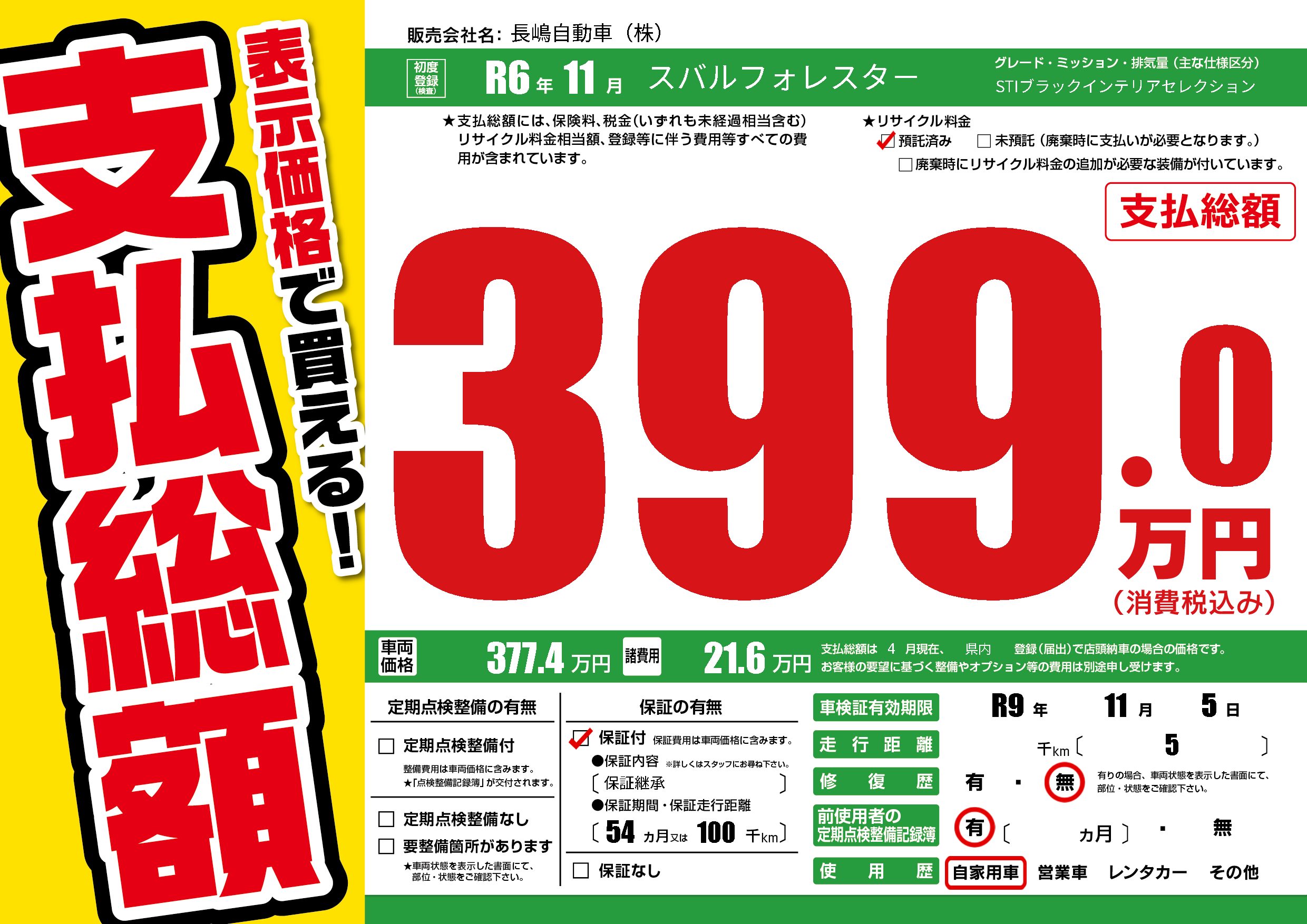 保証付き 保証内容(保証継承) 54ヶ月または(100)千kmまで |