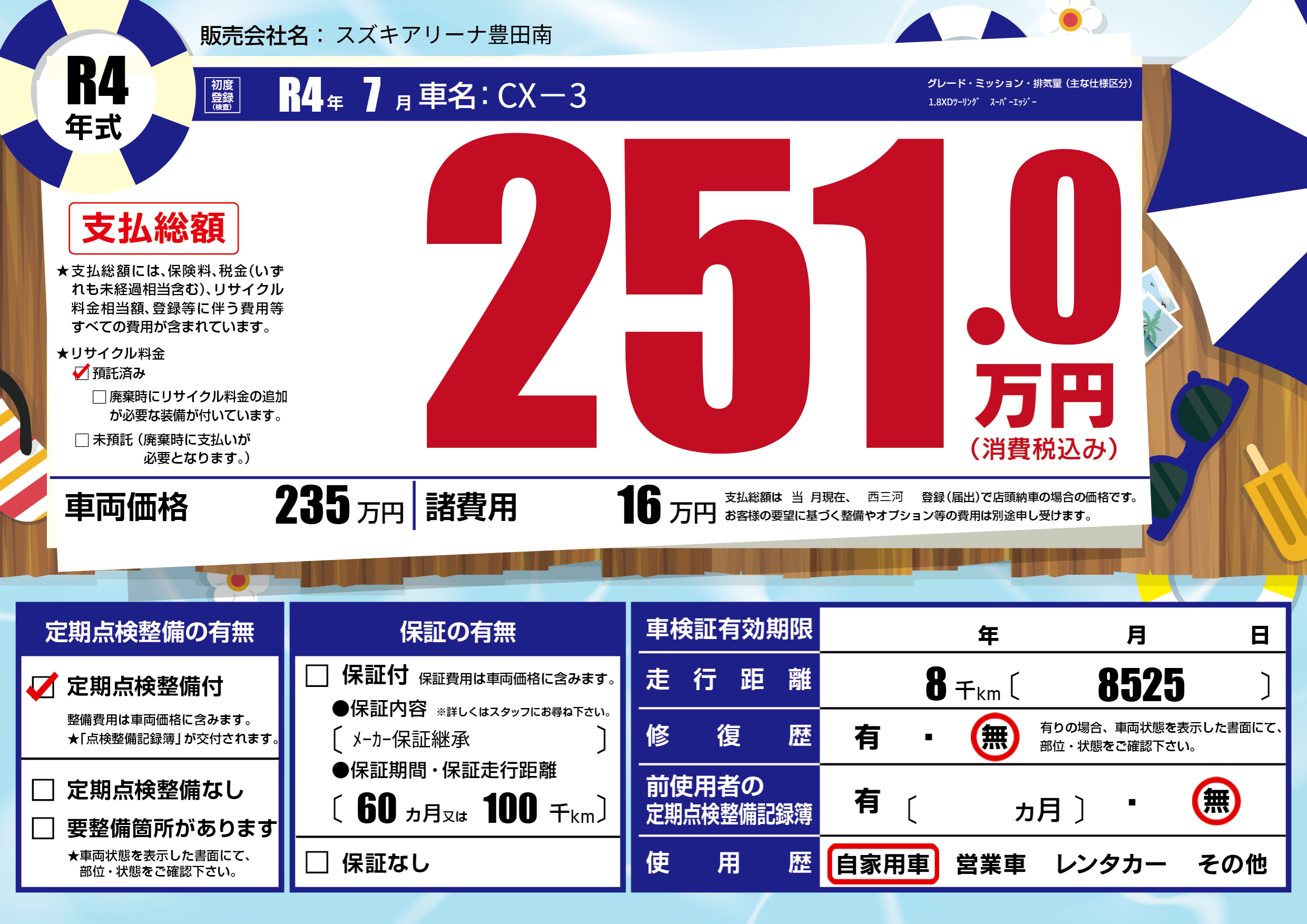 | 車名 | CX-3 | グレード ミッション 排気量 |