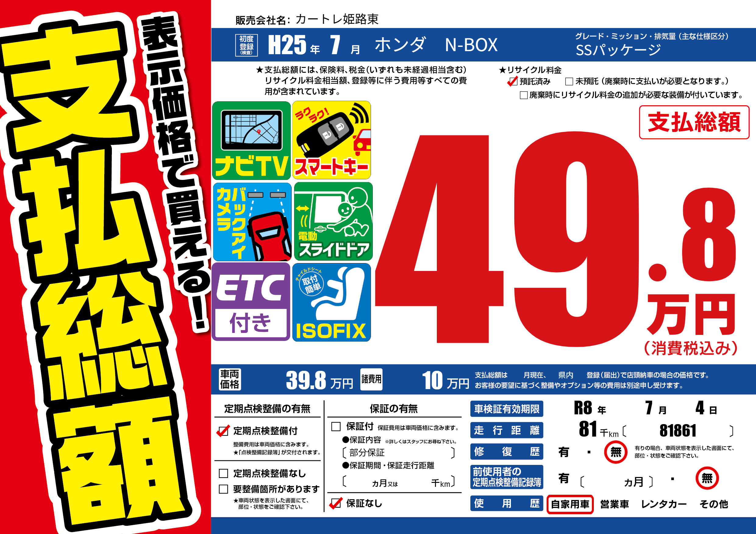 なし | 車検制限 | R8年7月4月 |
