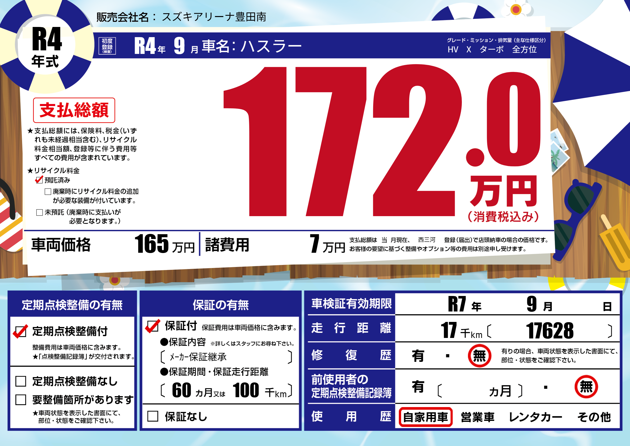 | 車名 | ハスラー | グレード ミッション 排気量 |