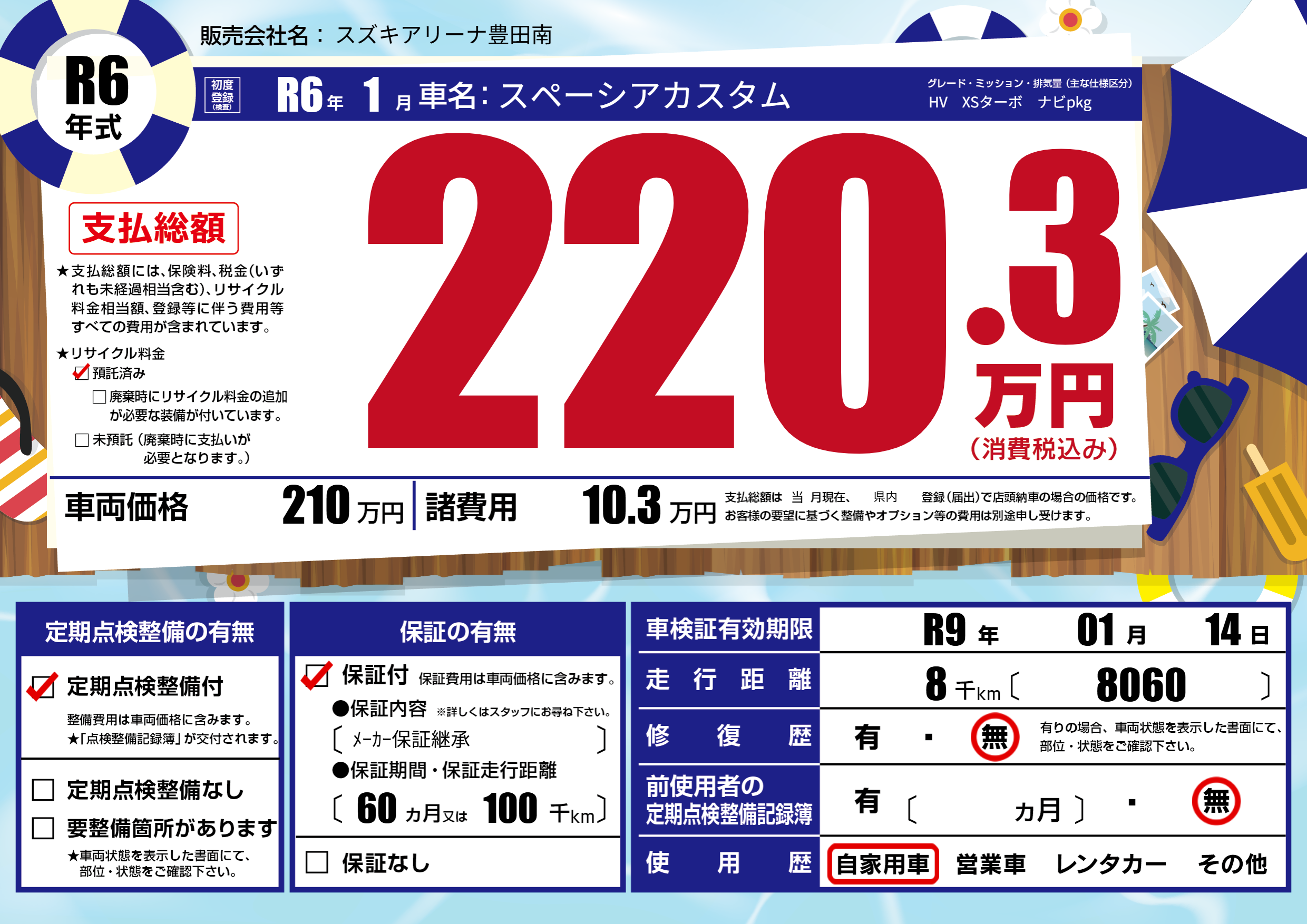 | 車名 | スペーシアカスタム | グレード ミッション 排気量 |