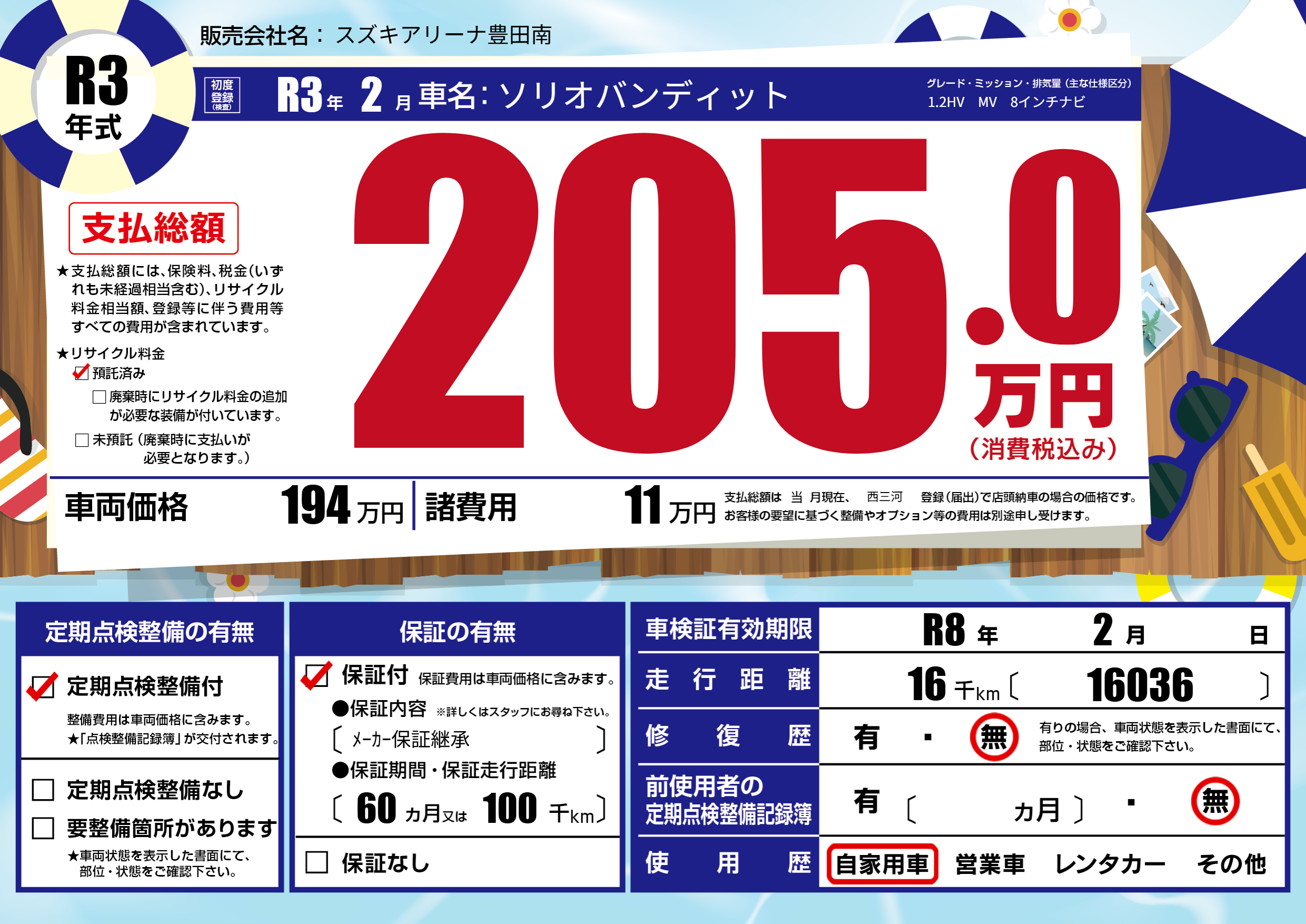 | 車名 | ソリオバンディット | グレード ミッション 排気量 |
