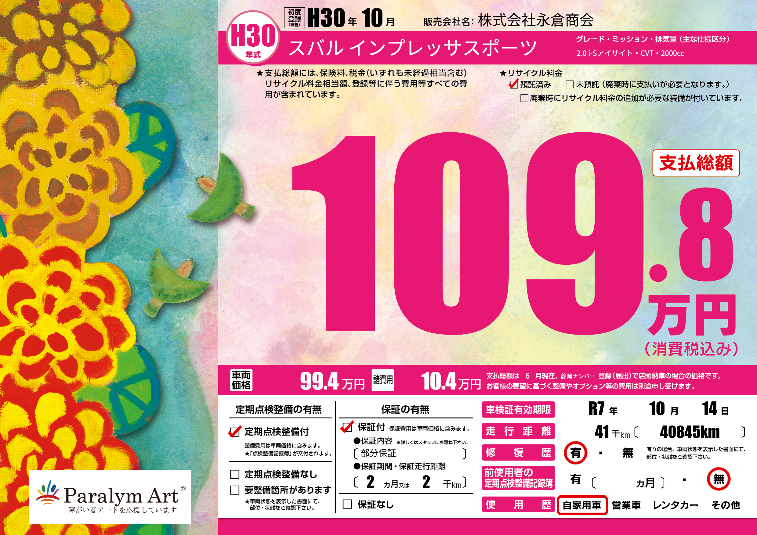 | 車検制限 | R7年 10月 14日 | ||
