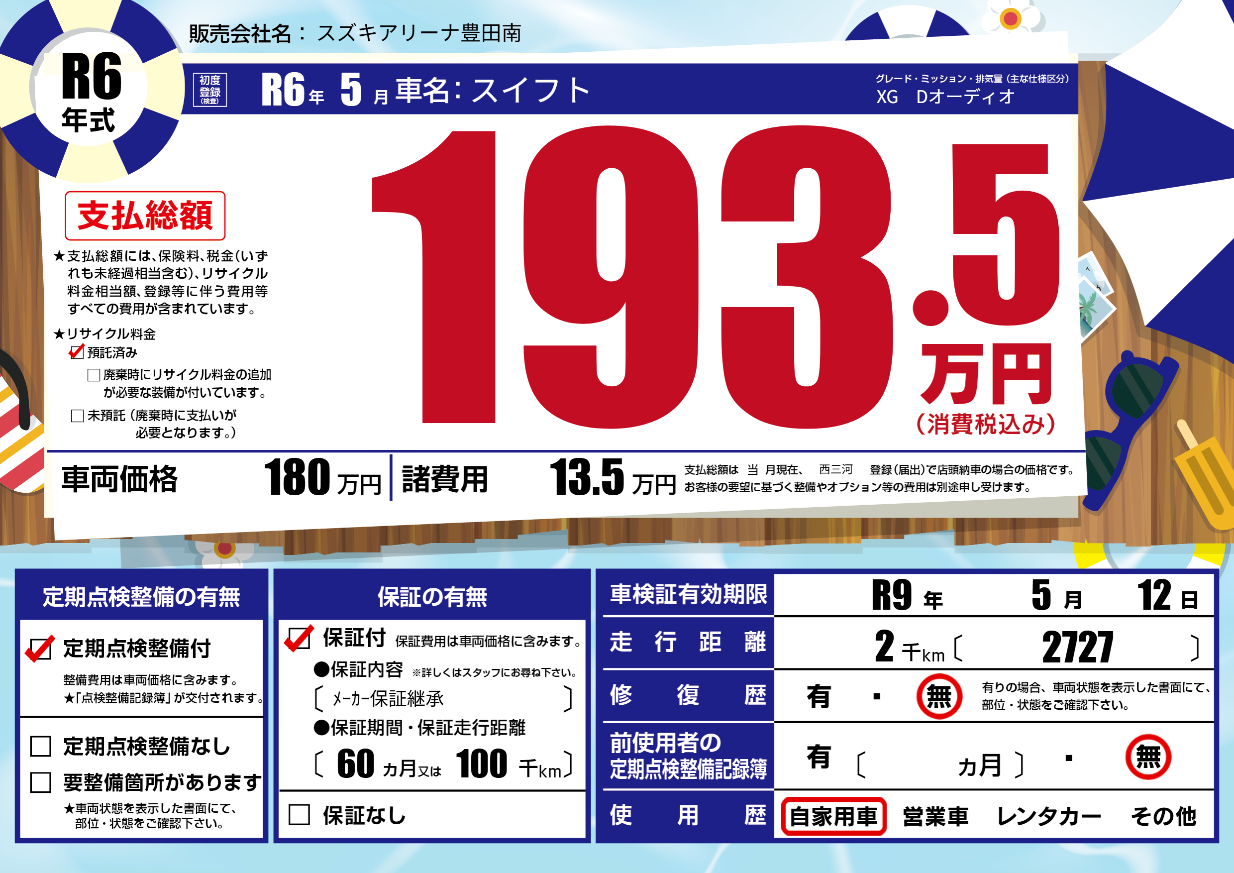 なし | 車検制限 | R9年5月12月 |