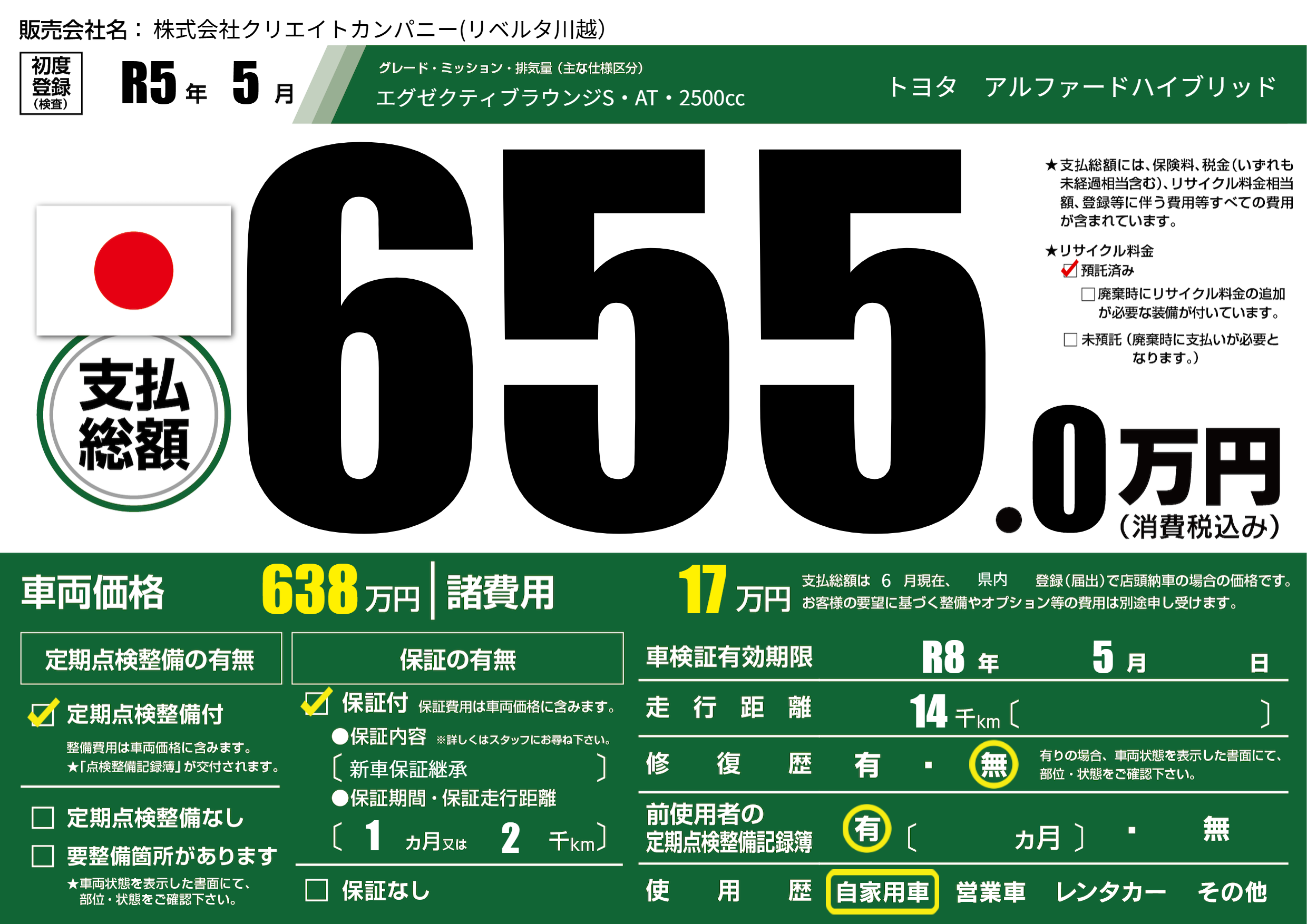 | 走行キロ | 1.4万km | 初年度登録 | R5年5月 |
