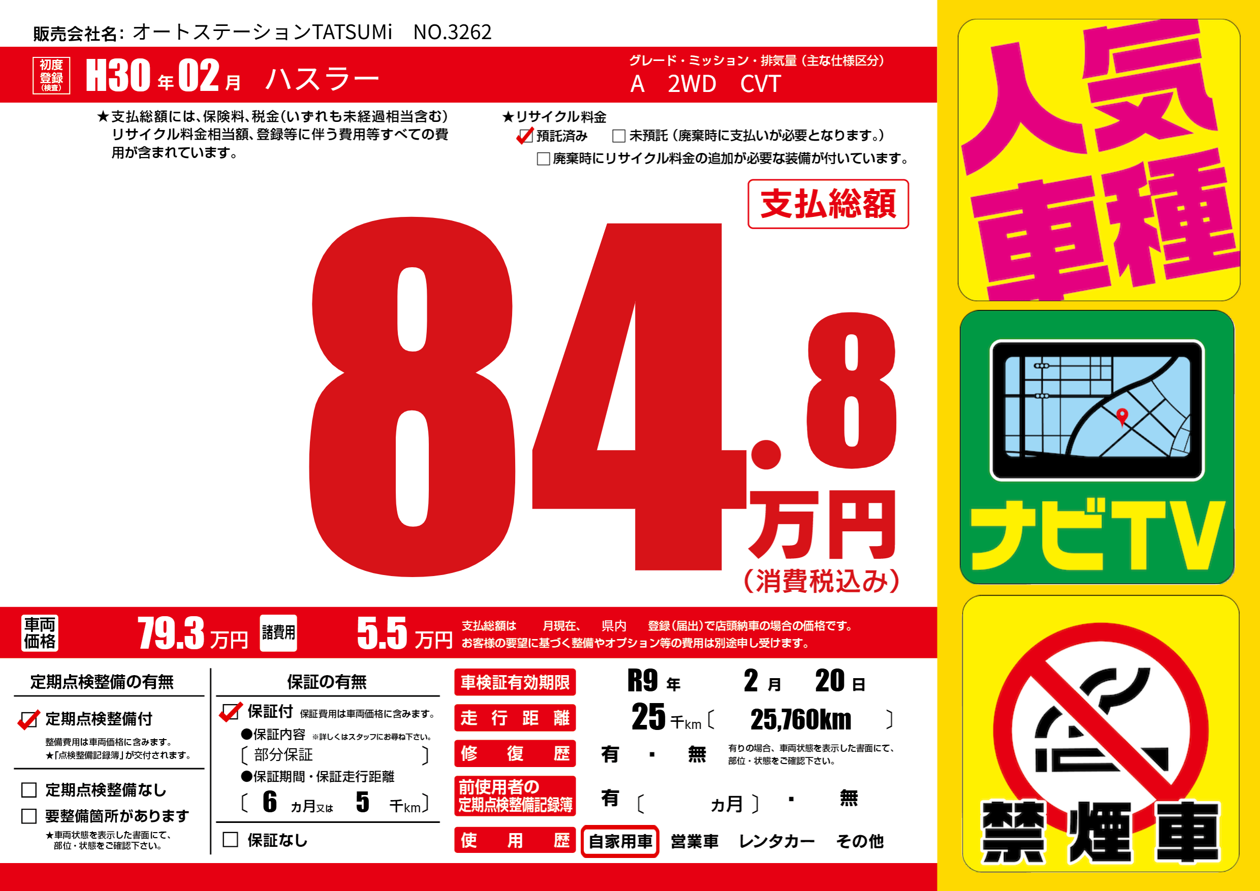 | 車検制限 | R9年 2月 20日 | ||