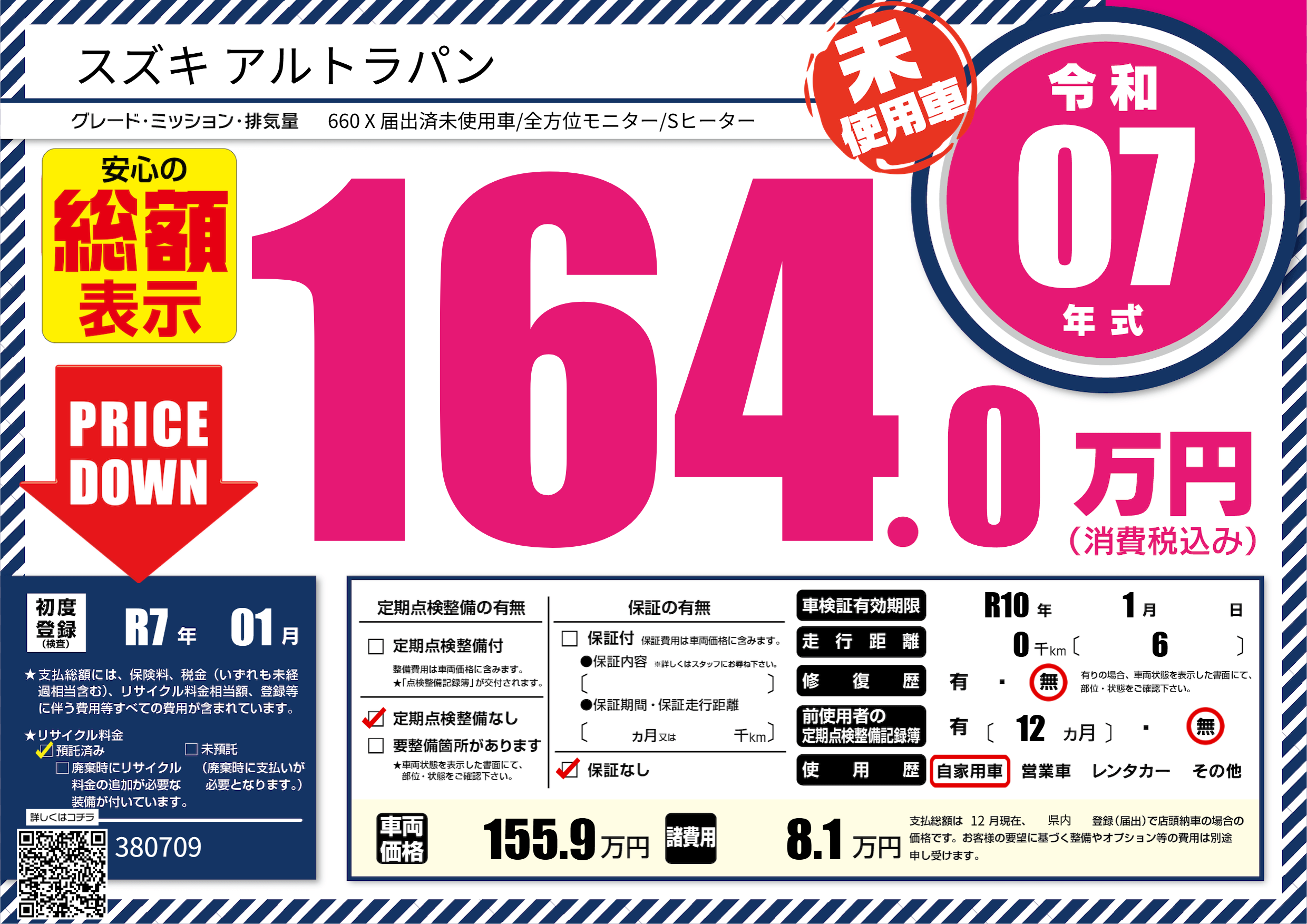 | 走行キロ | - | 初年度登録 | R7年01月 |