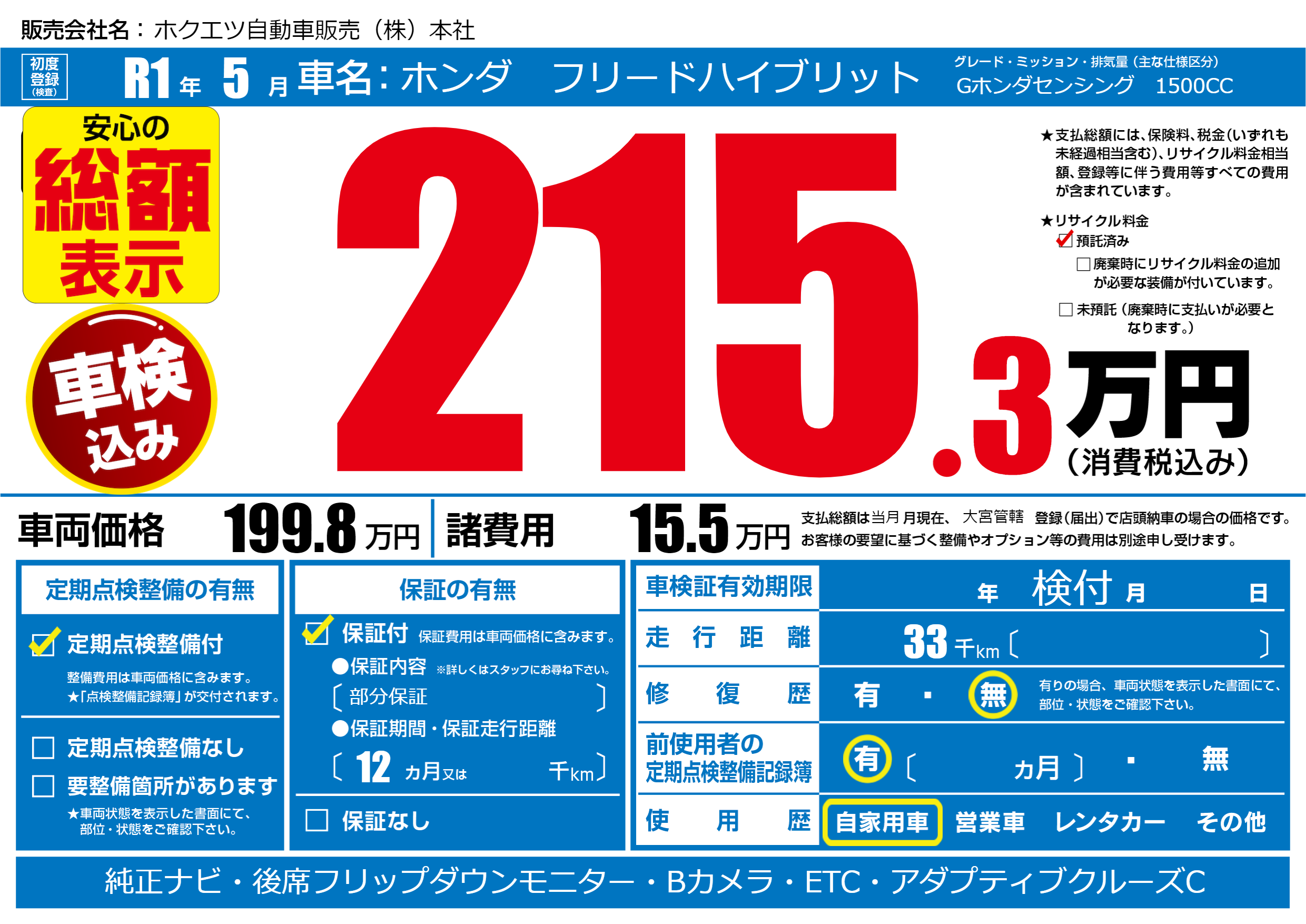 | 定期点検整備 | 定期点検整備あり | ||