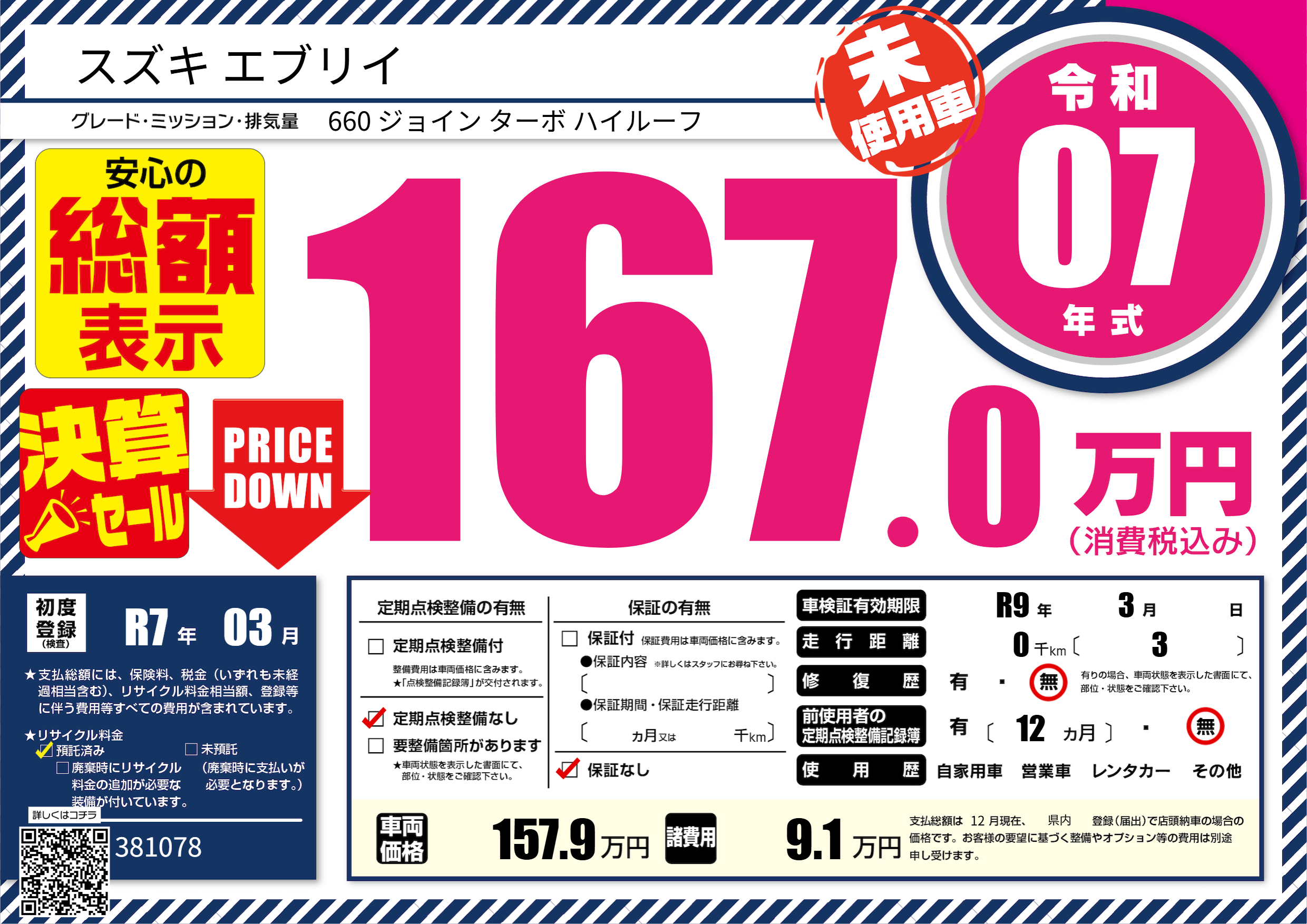 | 走行キロ | - | 初年度登録 | R7年03月 |