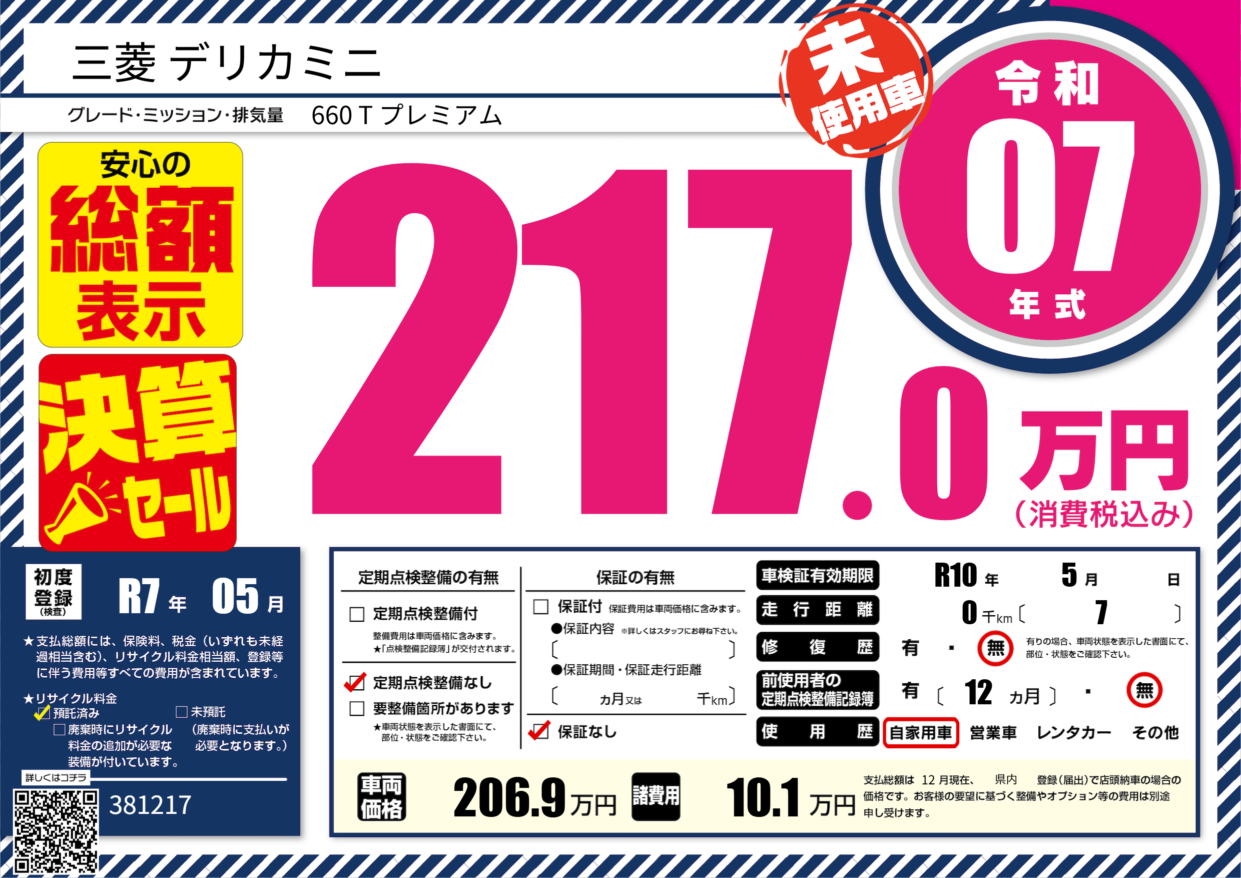 | 走行キロ | - | 初年度登録 | R7年05月 |