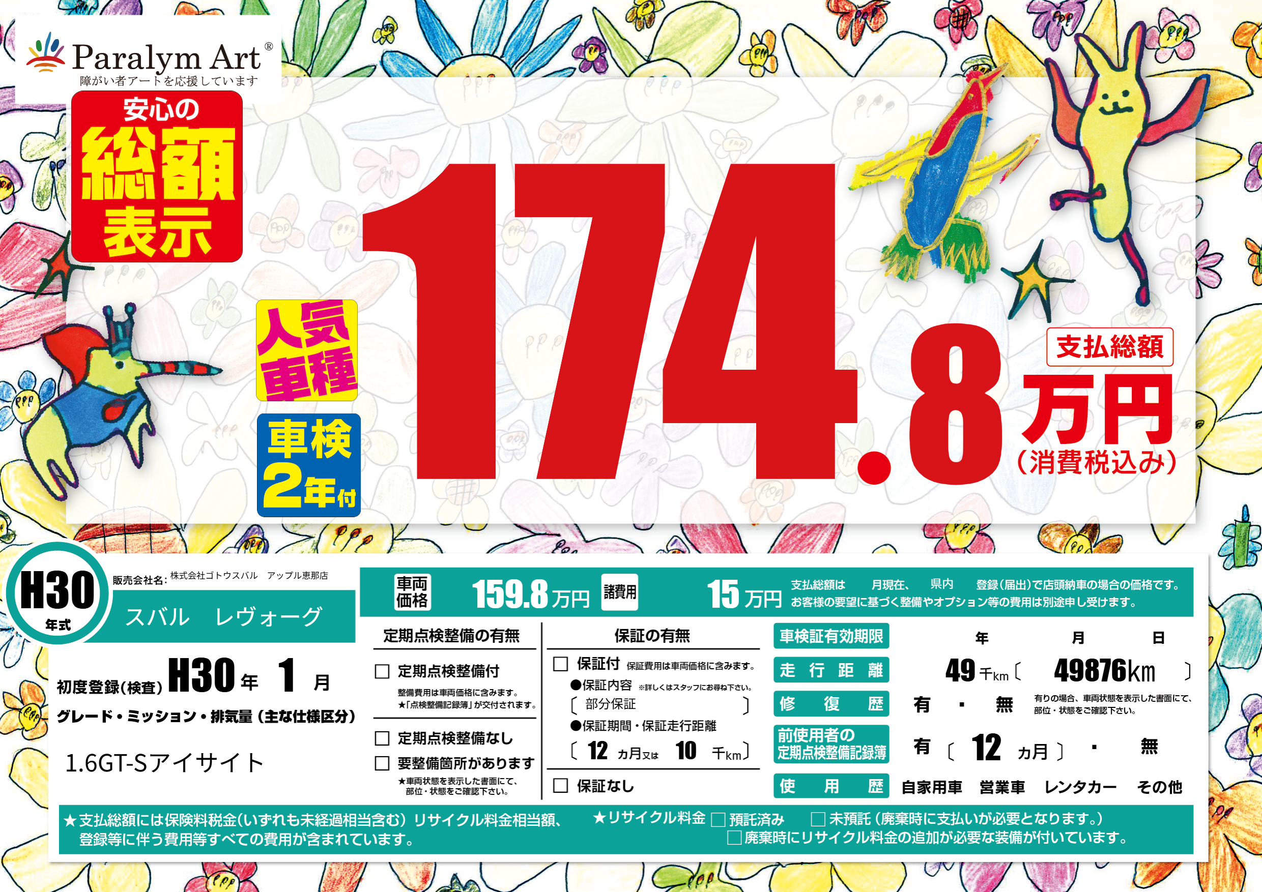 | 車名 | スバル レヴォーグ | グレード ミッション 排気量 |