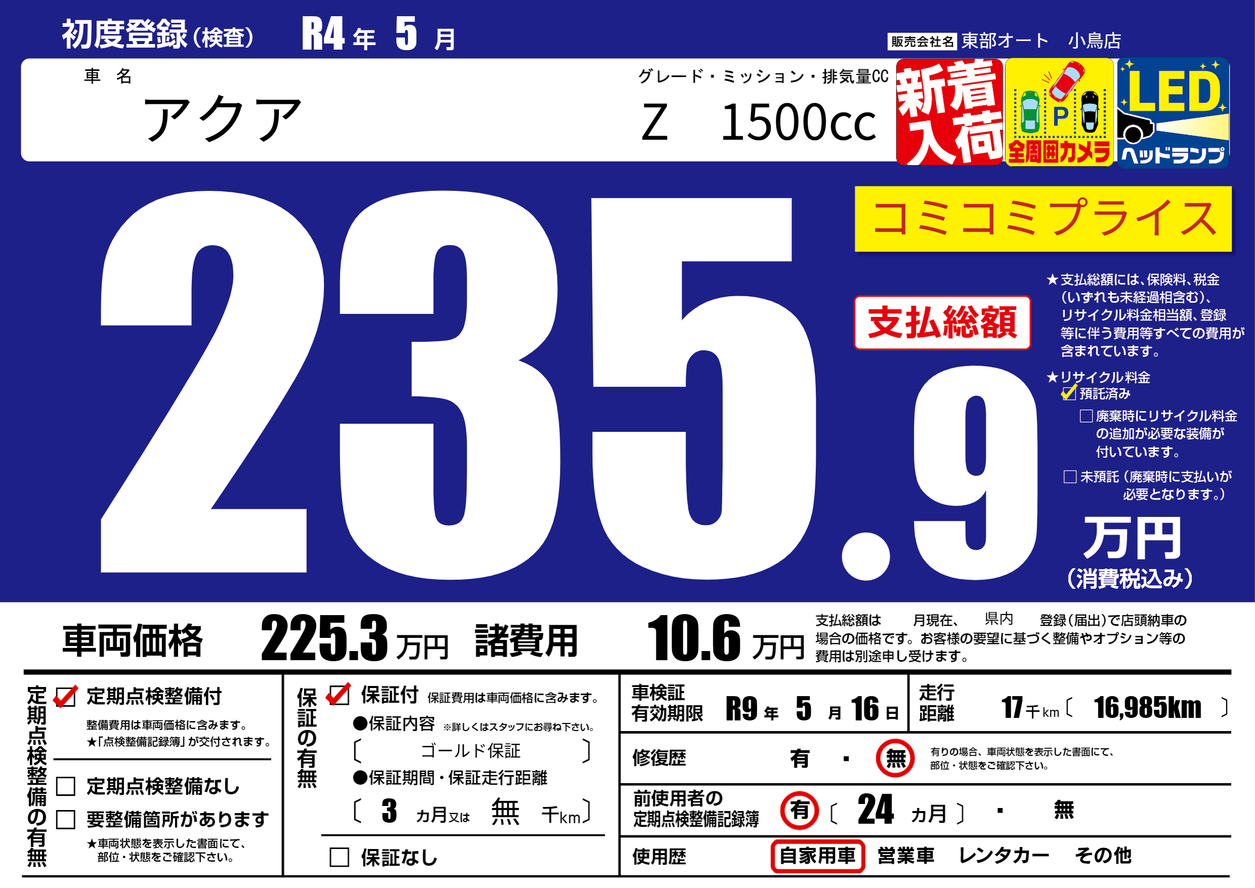 | 車検制限 | R9年 5月 16日 | ||
