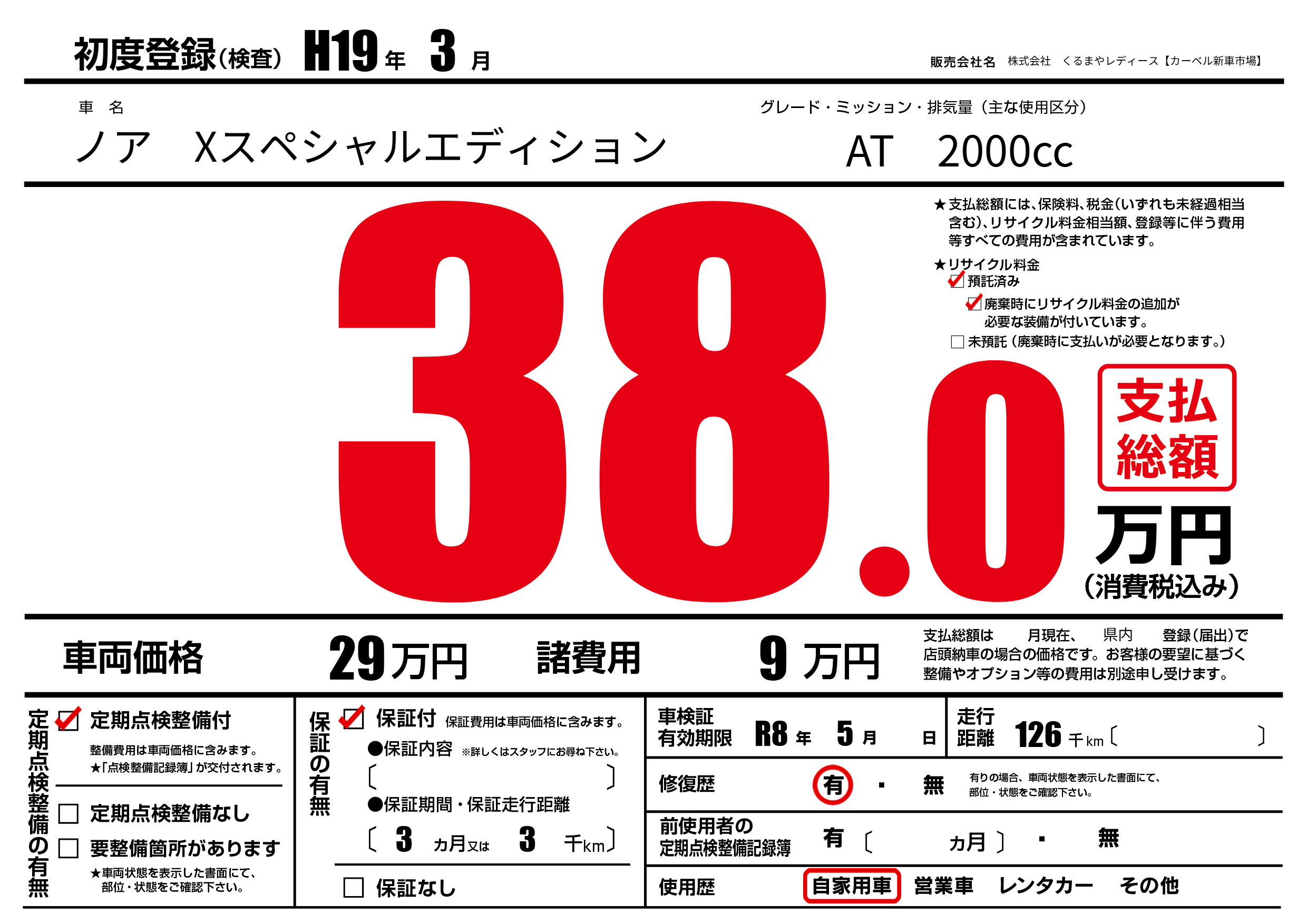 | 初年度登録 | H19年3月 | ||