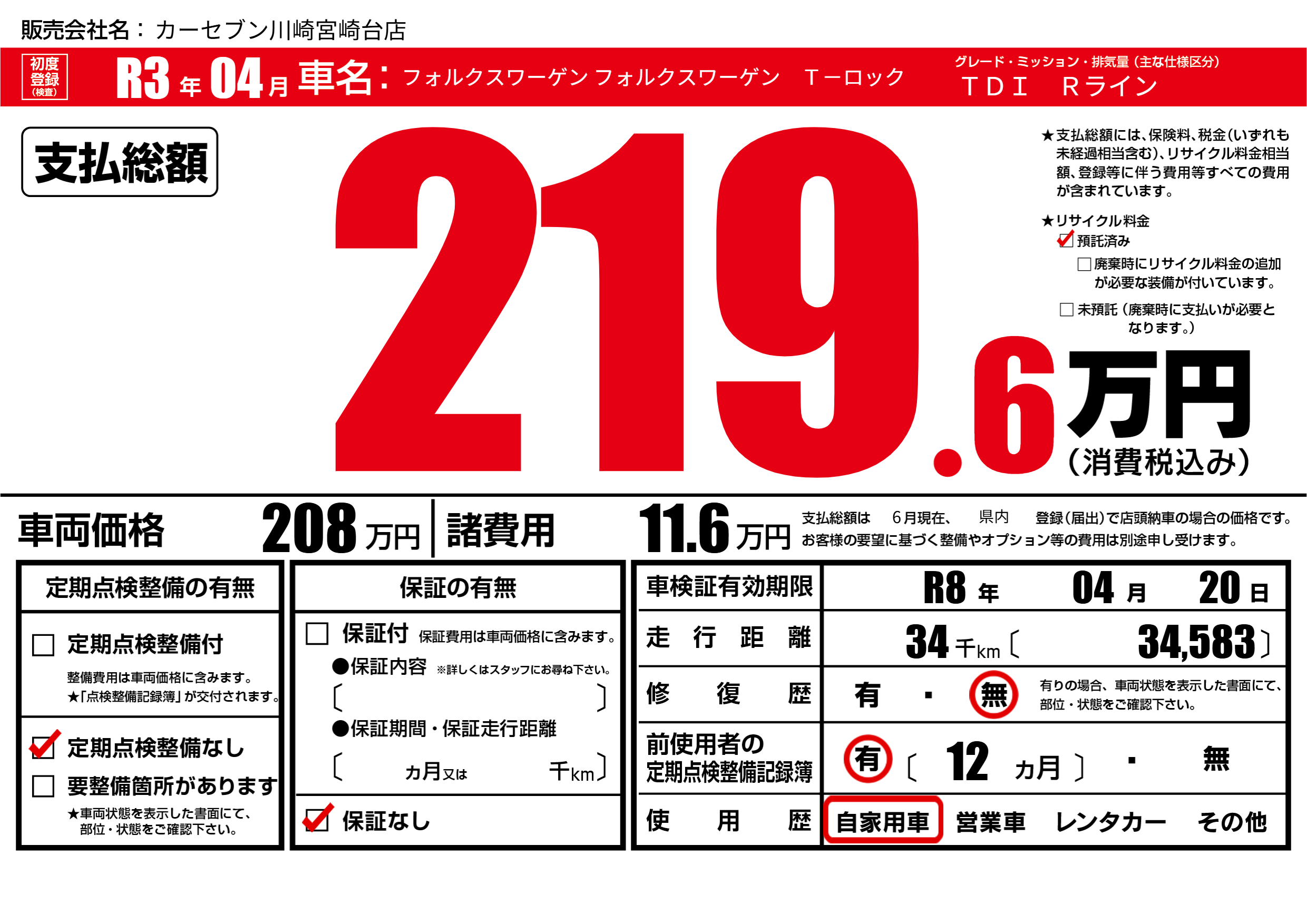 | 定期点検整備 | 定期点検整備なし | ||
