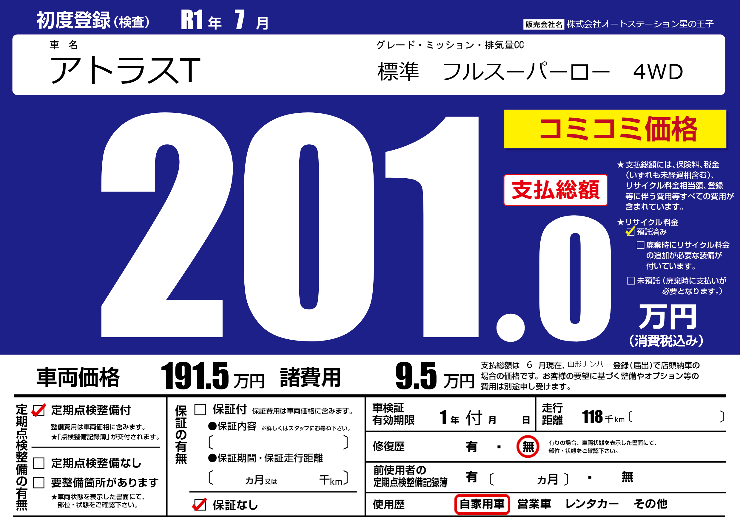 | 車名 | アトラスT | グレード ミッション 排気量 |