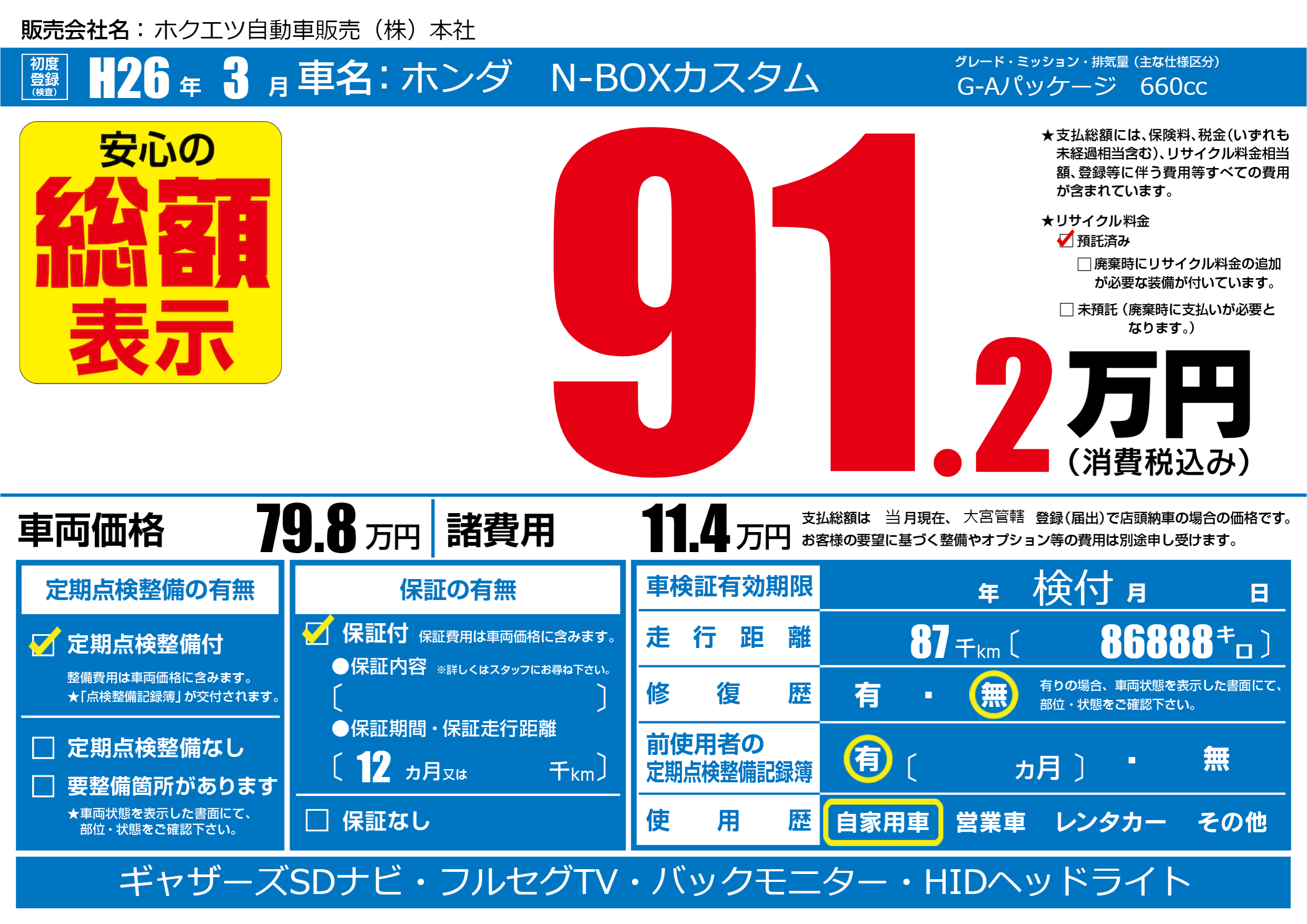 | 走行キロ | 8.7万km | ||