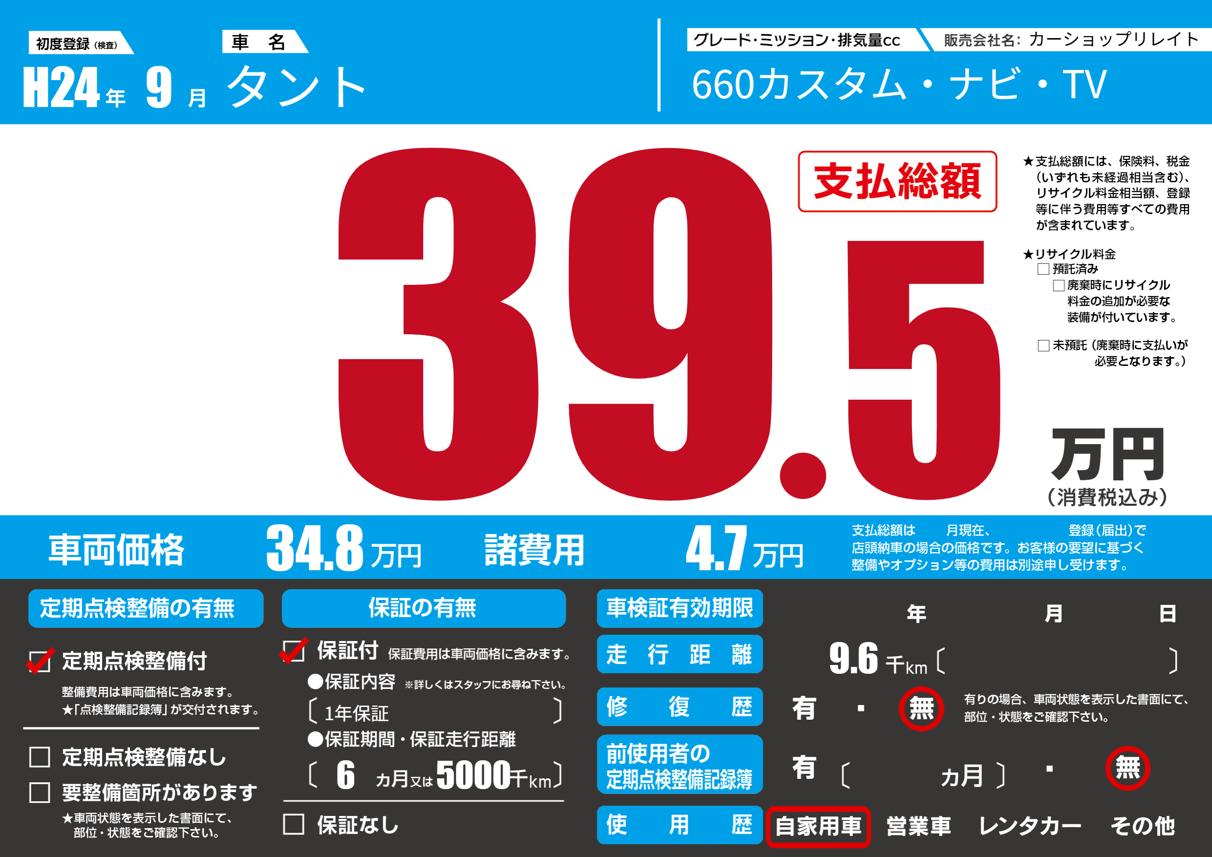 | 定期点検整備 | 定期点検整備あり | ||
