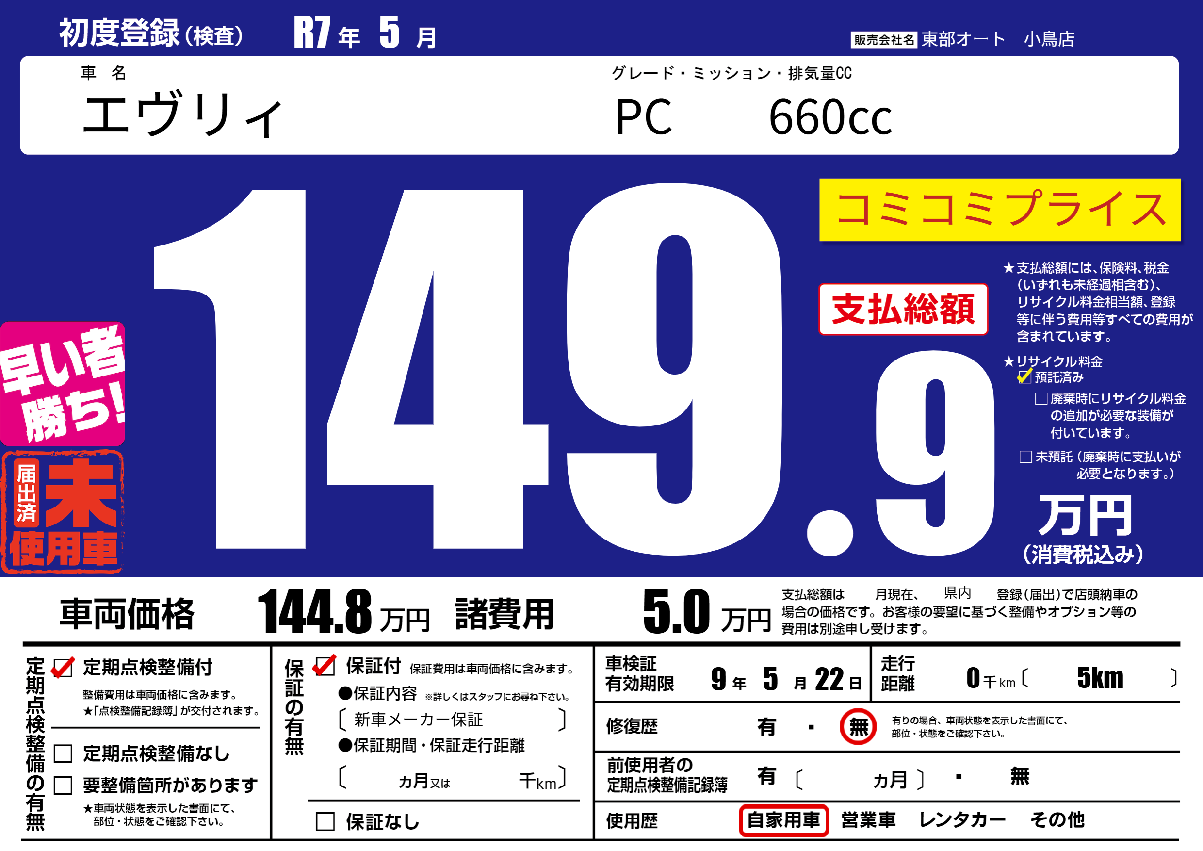 なし | 車検制限 | 9年5月22月 |