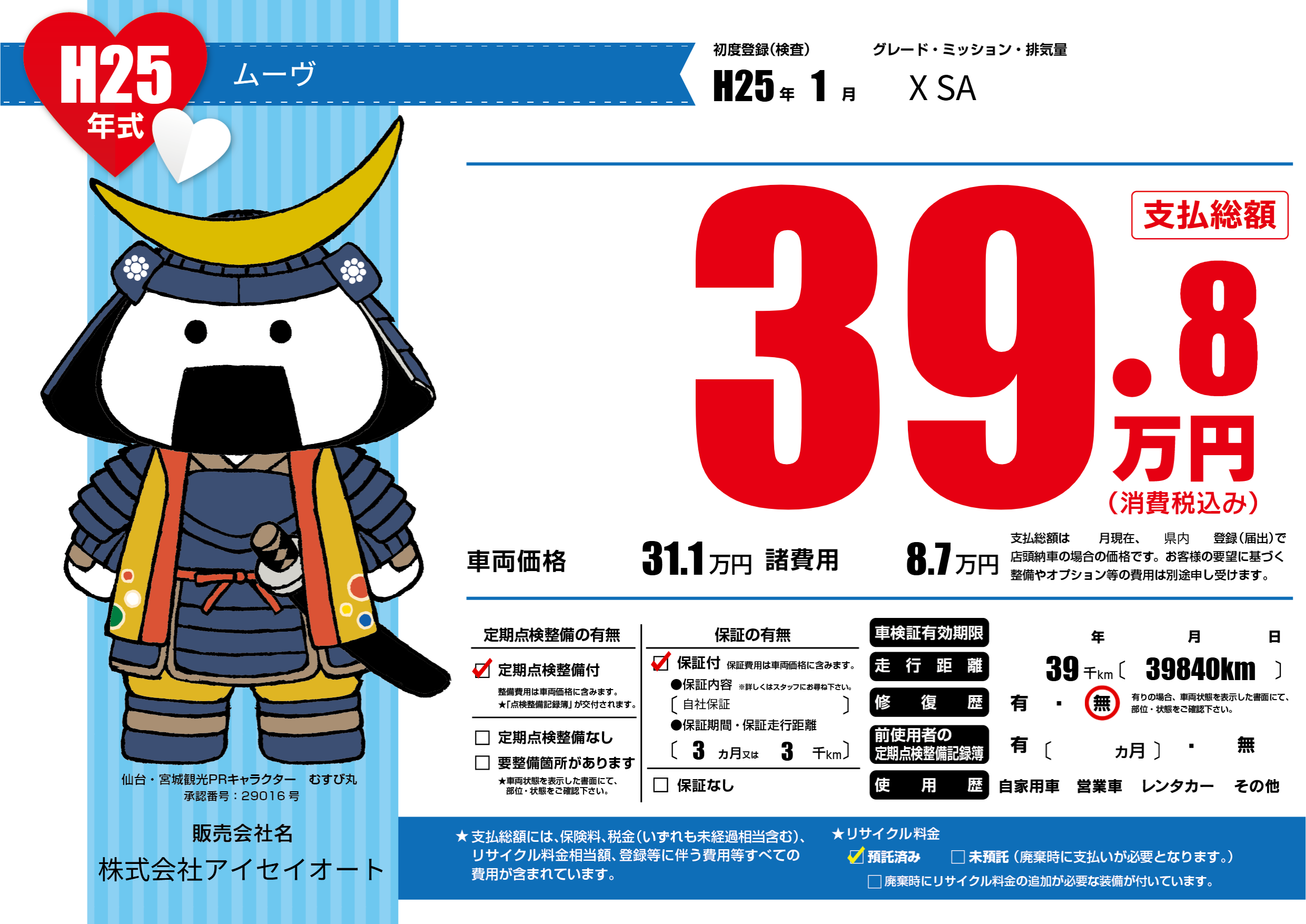 | 車名 | ムーヴ | グレード ミッション 排気量 |