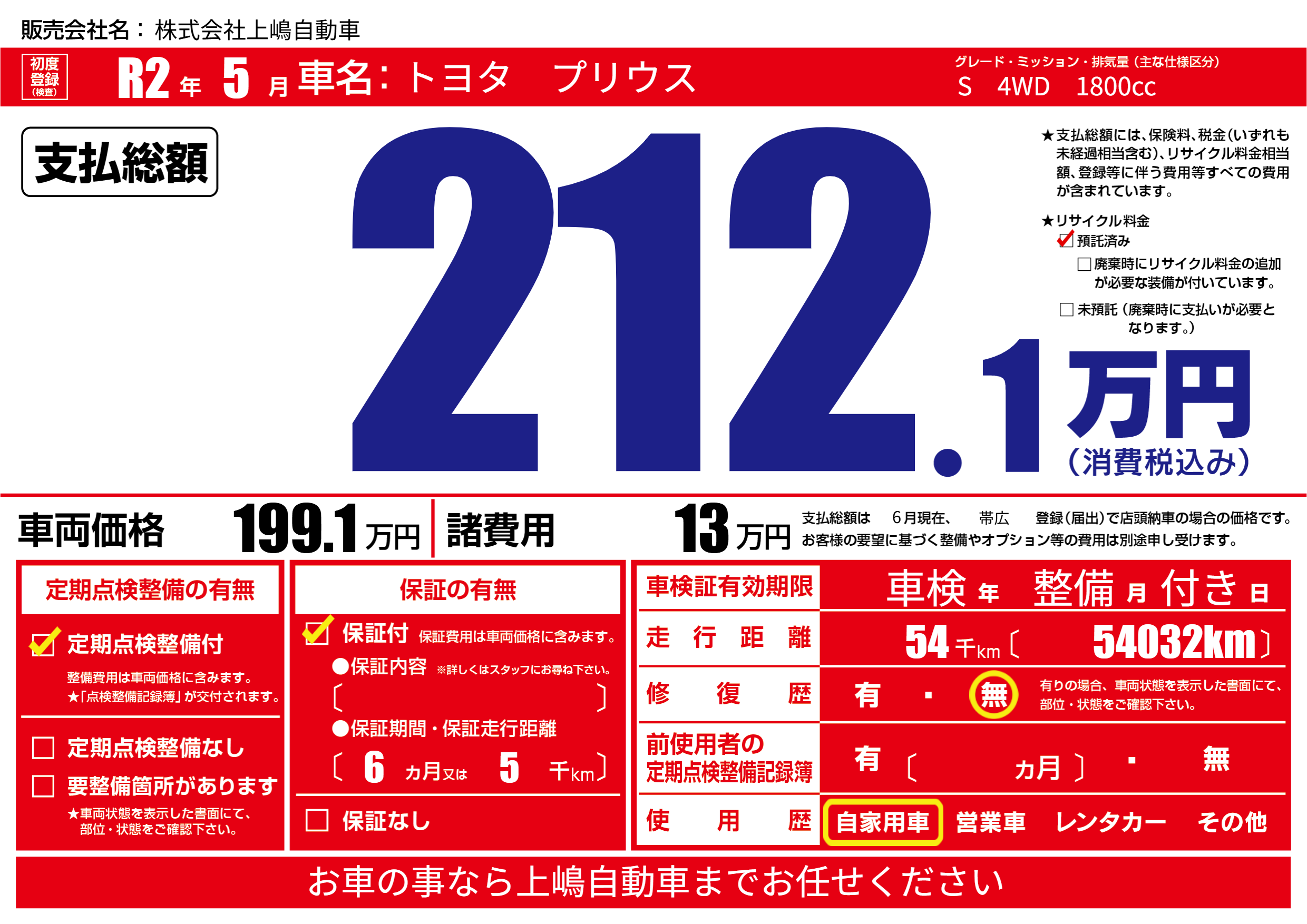 保証付き 保証内容(---) 6ヶ月または(5)千kmまで |