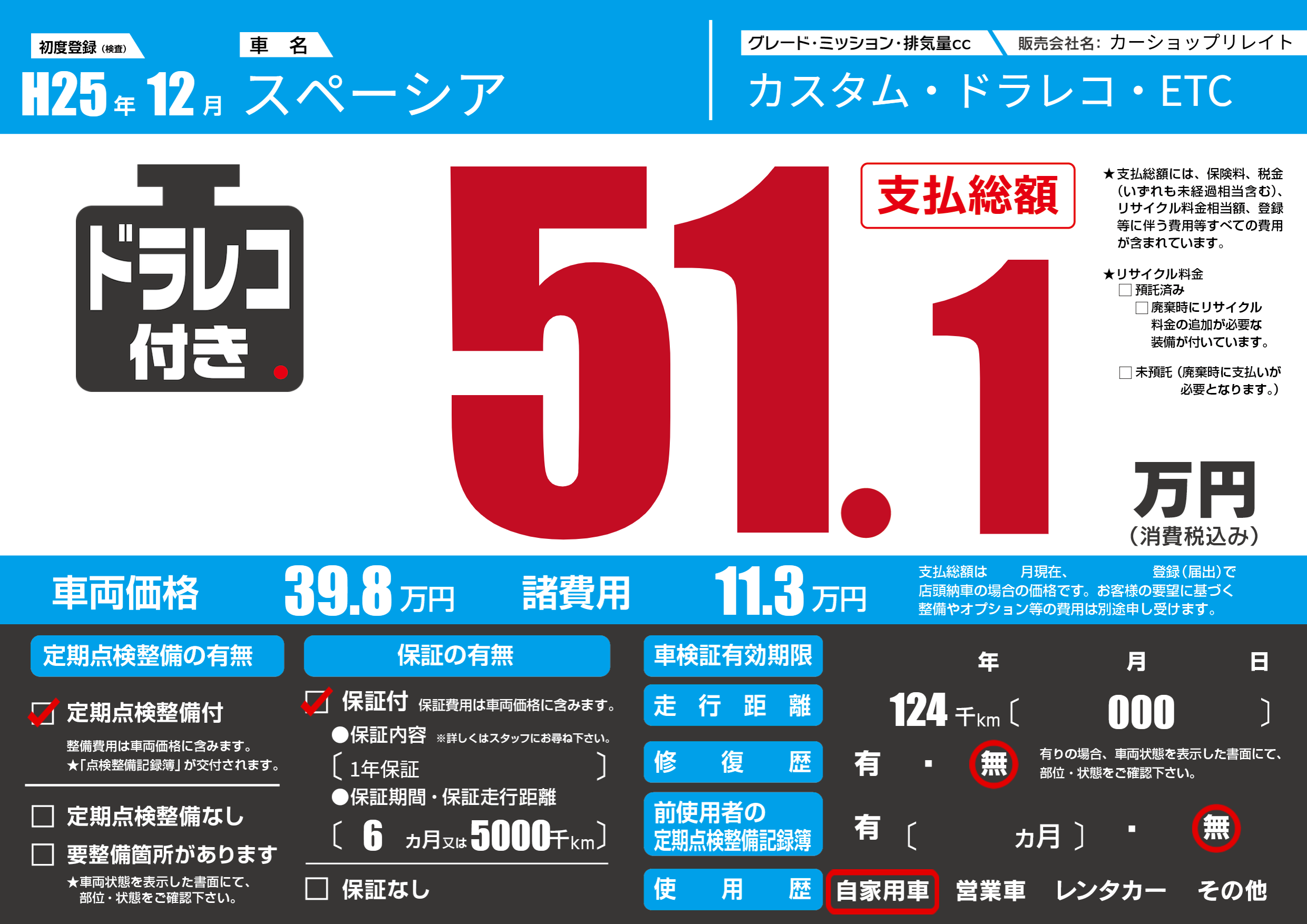 保証付き 保証内容(1年保証) 6ヶ月または(5000)千kmまで |