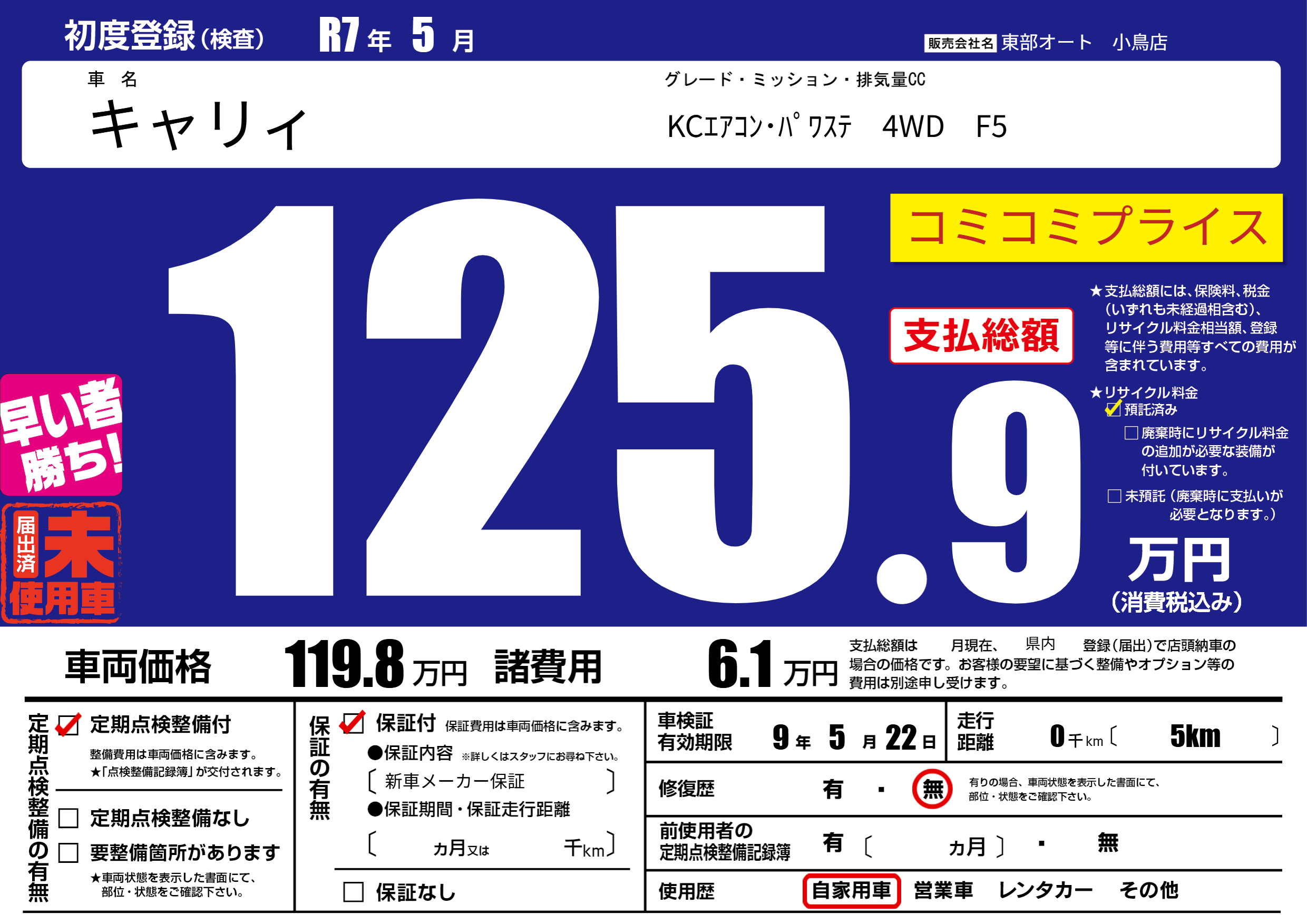 | 走行キロ | - | 初年度登録 | R7年5月 |