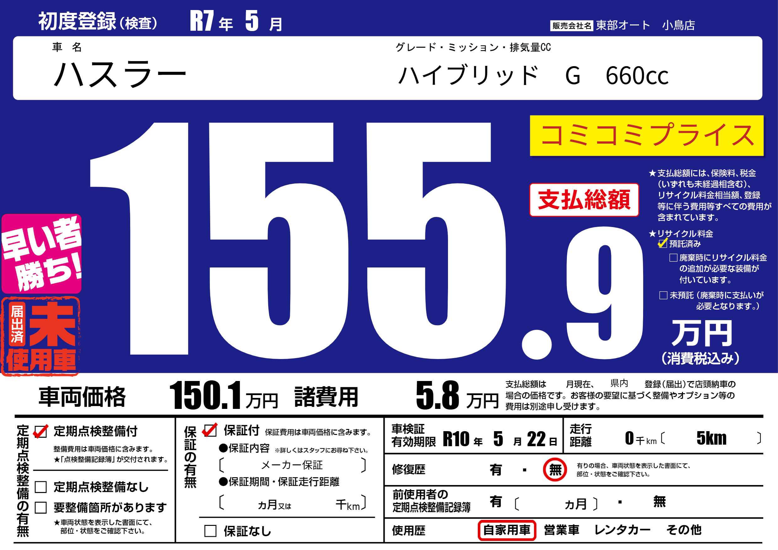なし | 車検制限 | R10年5月22月 |