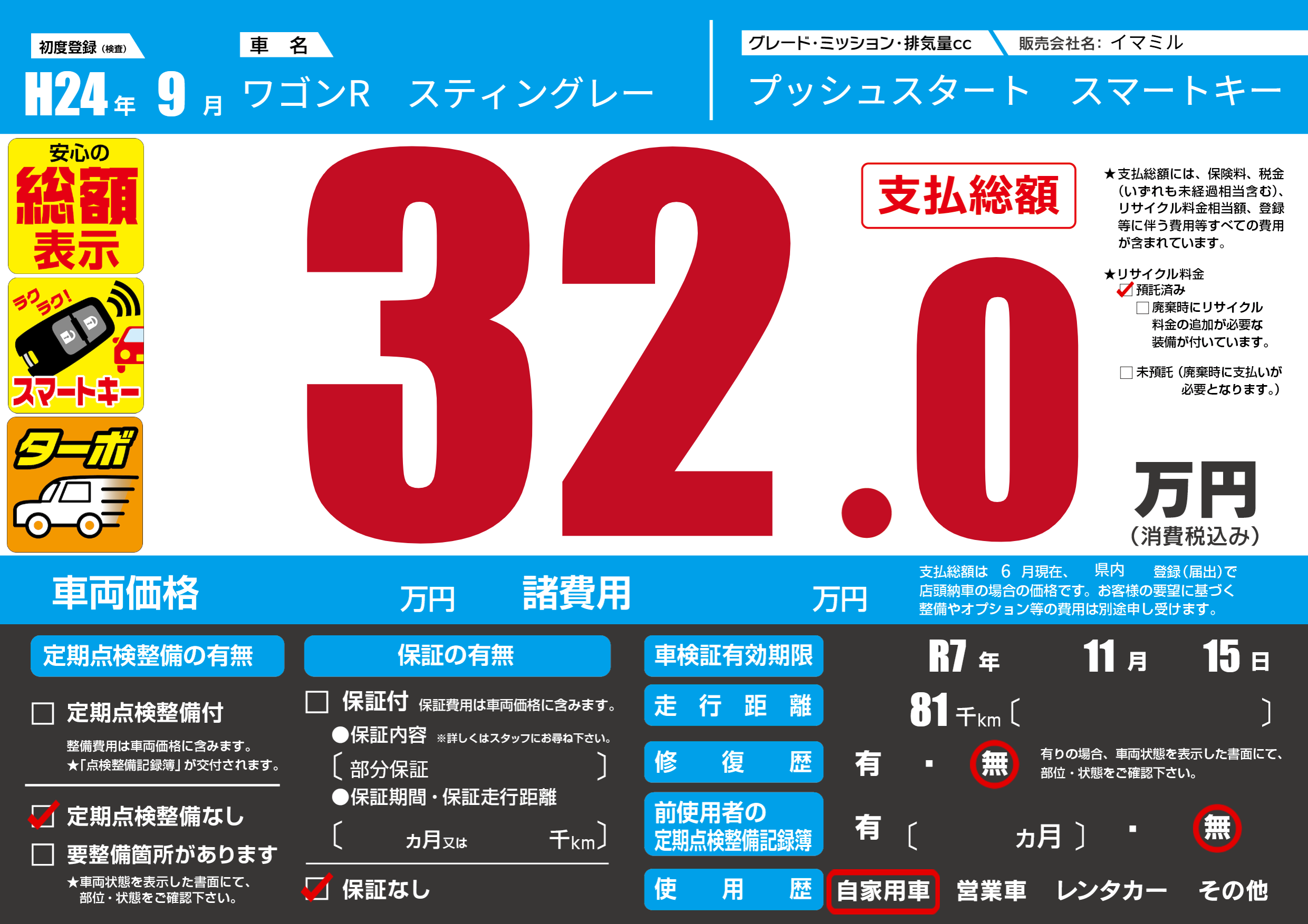 | 車検制限 | R7年 11月 15日 | ||