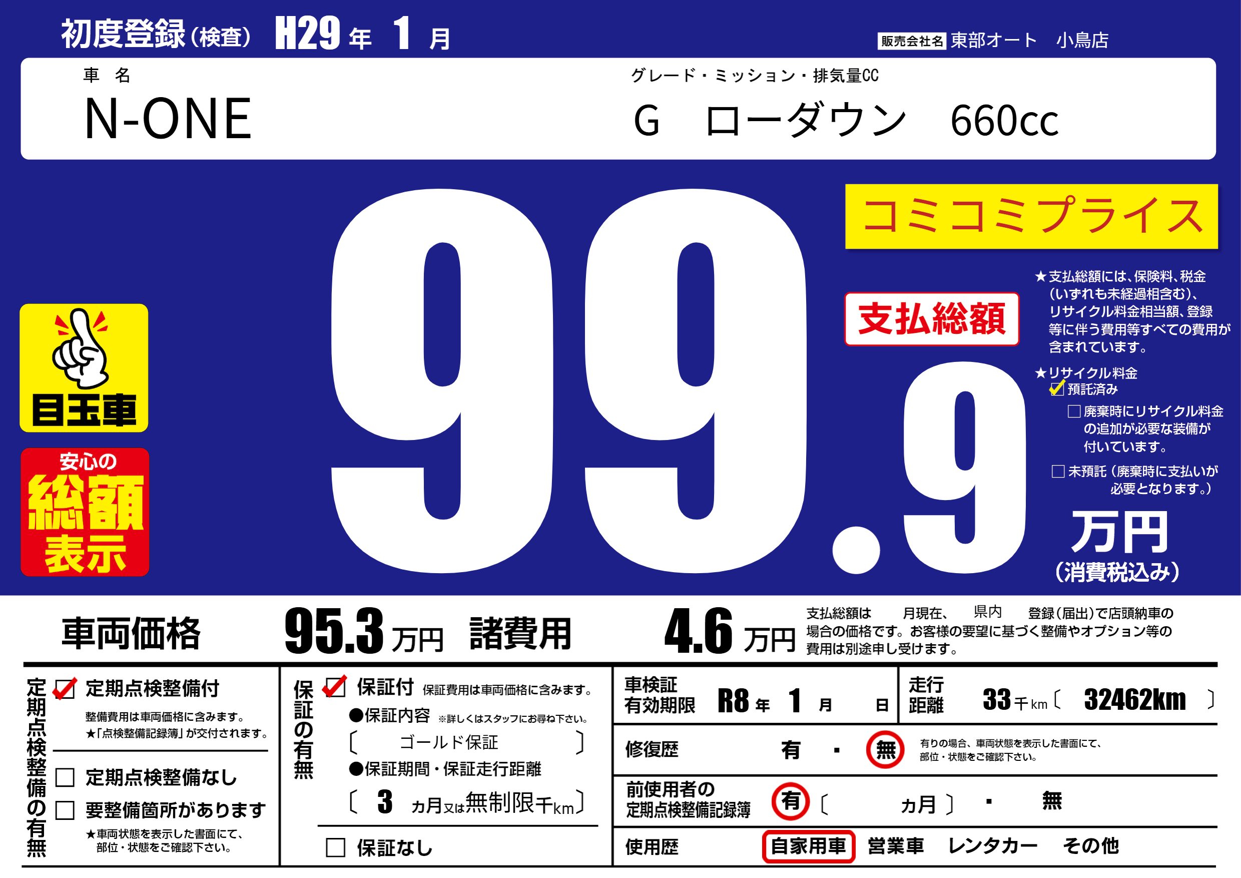 保証付き 保証内容( ゴールド保証) 3ヶ月または無制限千km |
