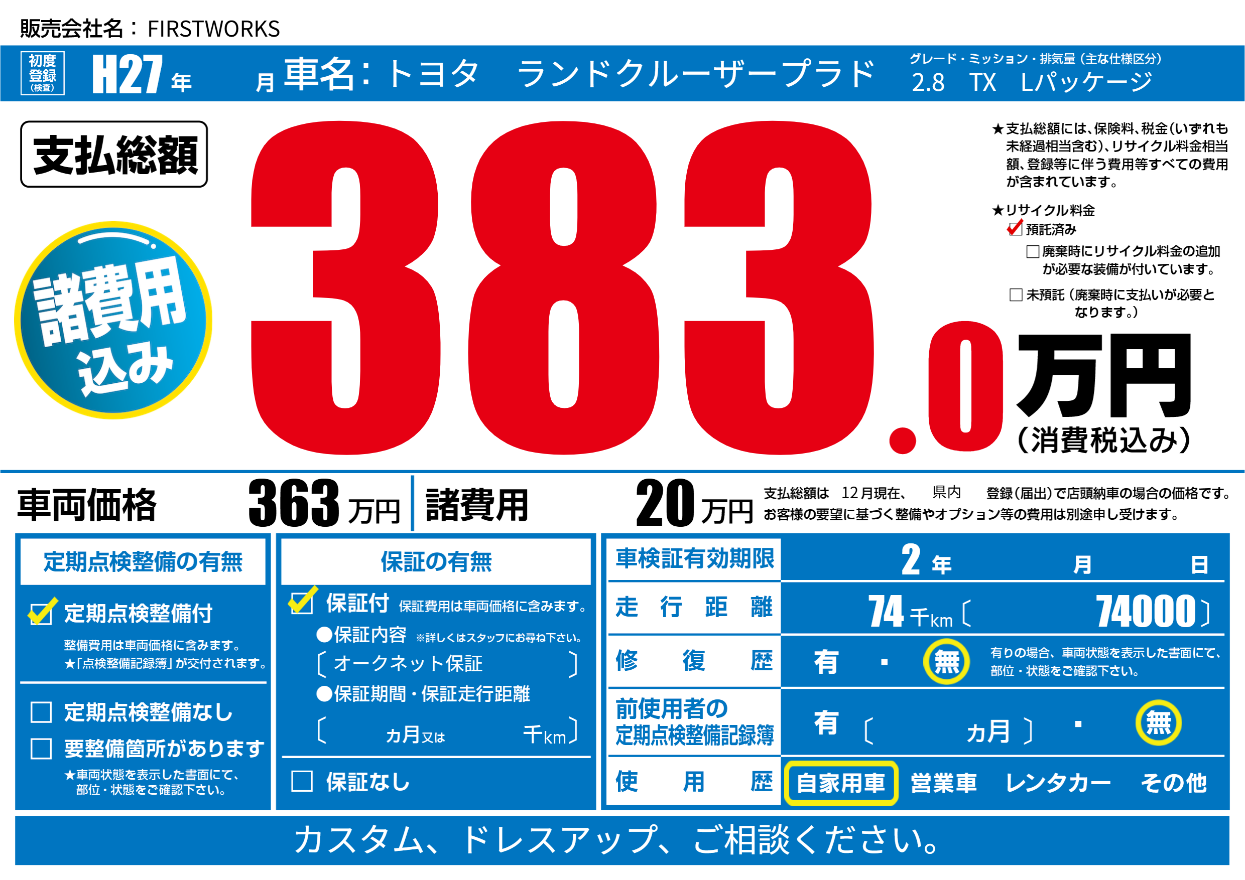 | 定期点検整備 | 定期点検整備あり | ||