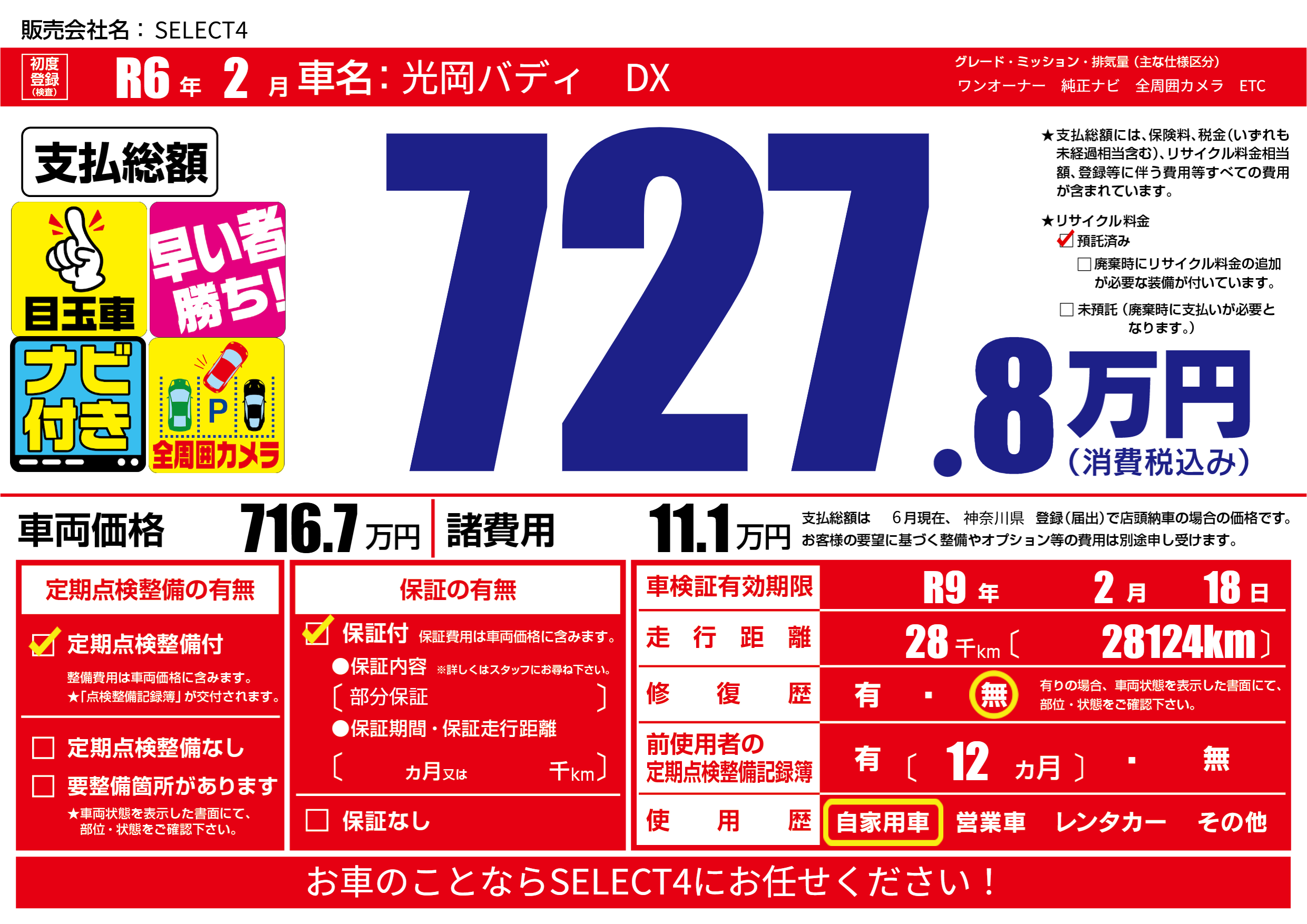 | 車名 | 光岡バディ DX | グレード ミッション 排気量 |