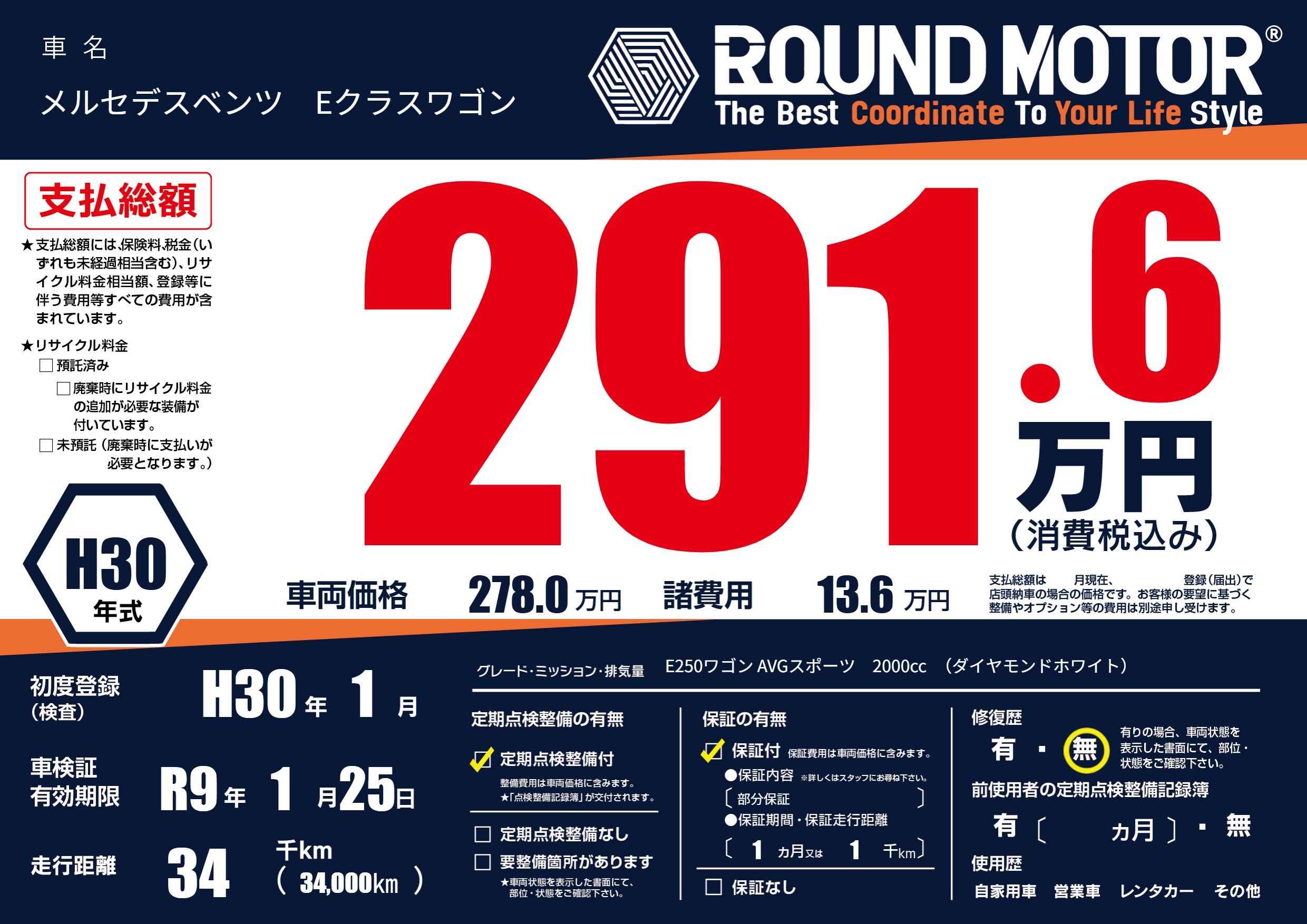| 車名 | メルセデスベンツ Eクラスワゴン | グレード ミッション 排気量 |