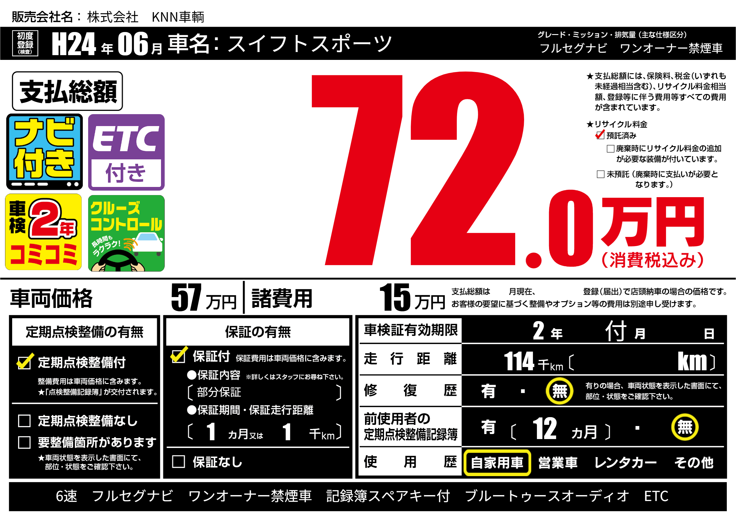 なし | 車検制限 | 2年付月---月 |