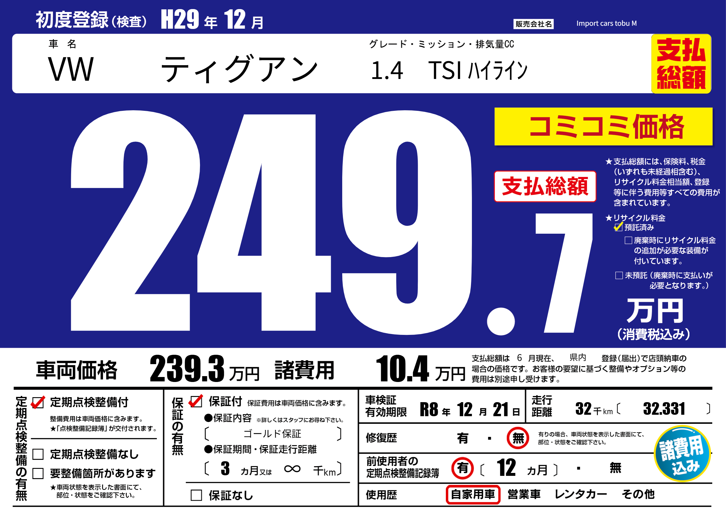 | 車検制限 | R8年 12月 21日 | ||