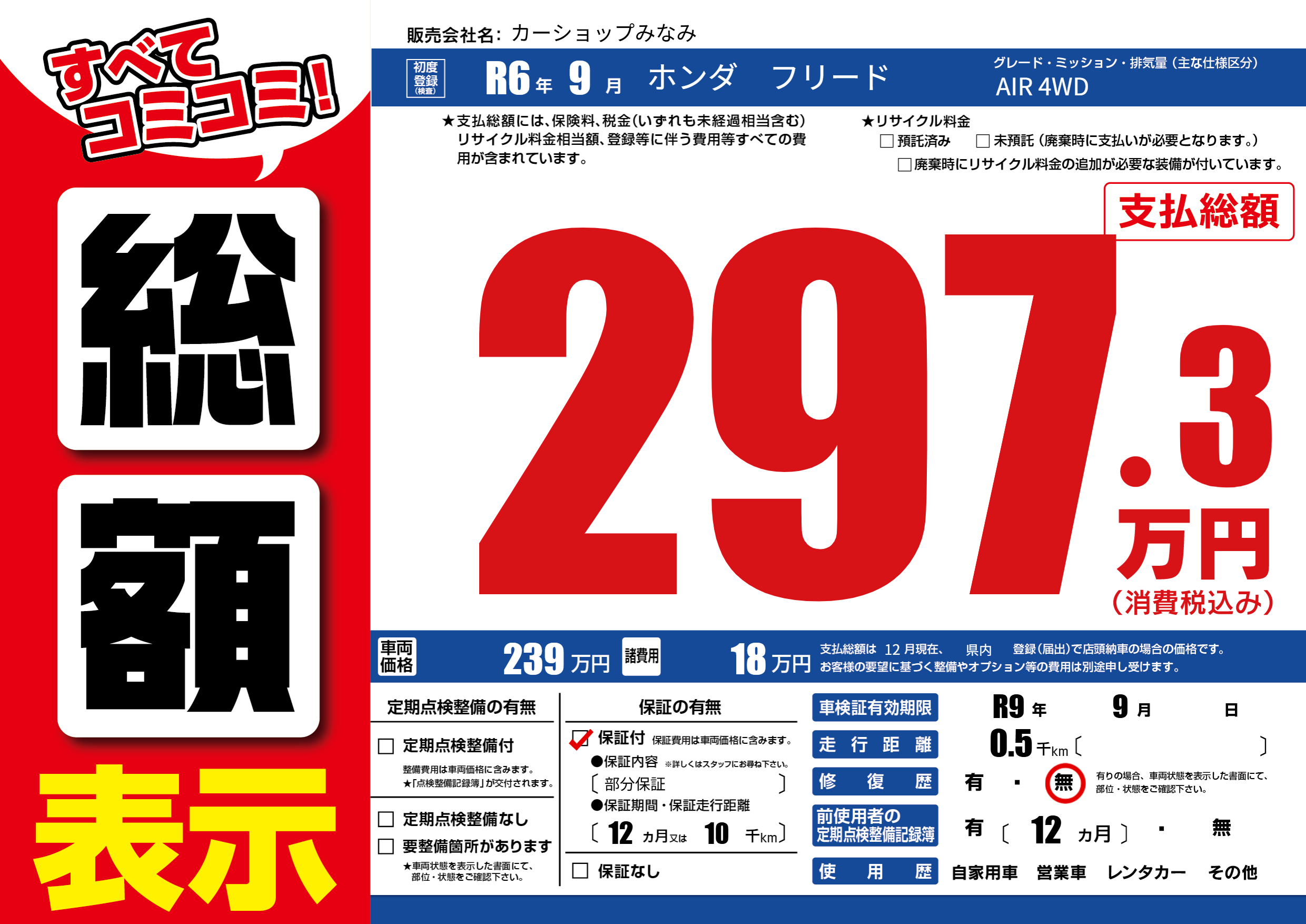 | 車検制限 | R9年 9月 - 日 | ||
