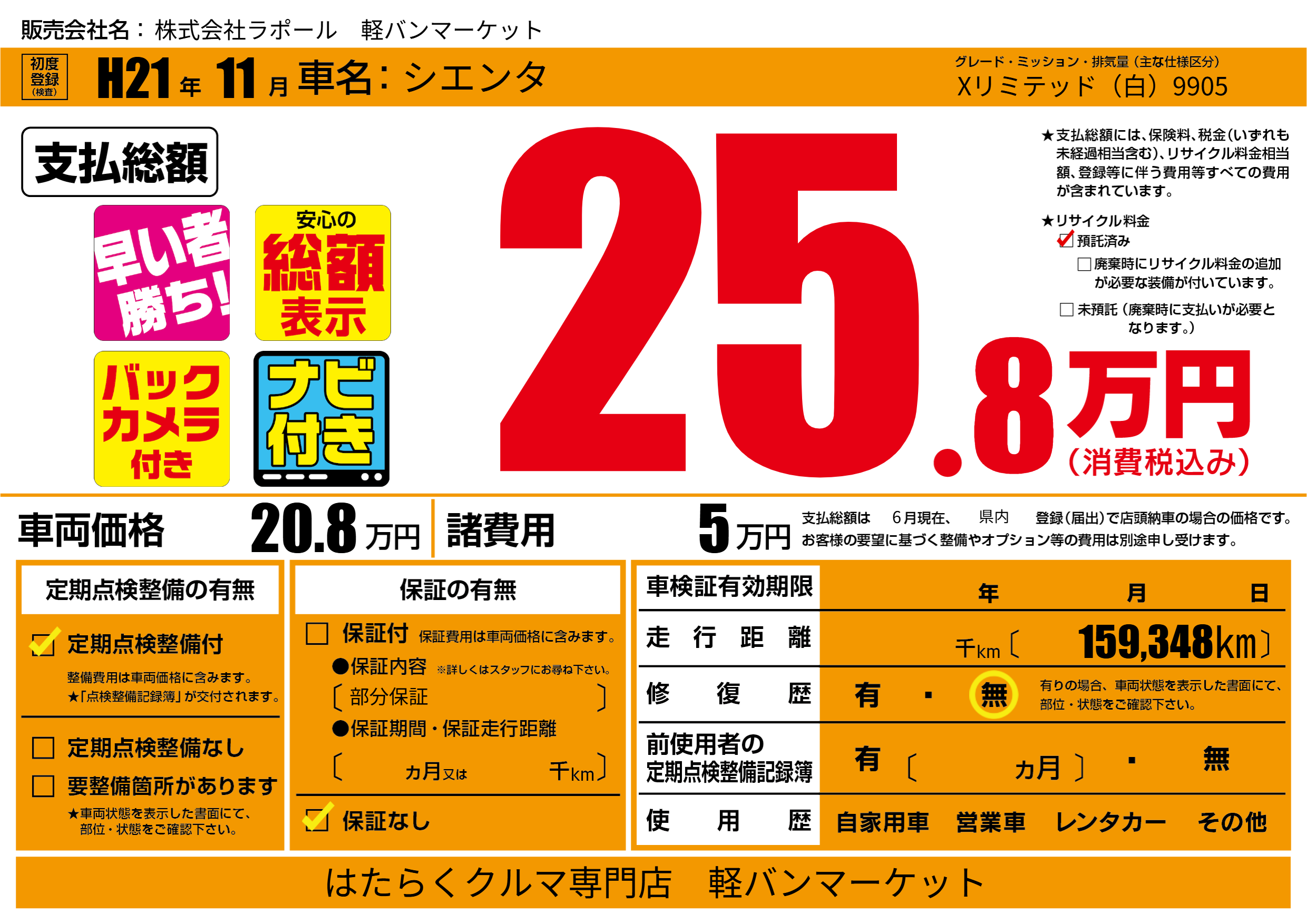 | 定期点検整備 | 定期点検整備あり | ||