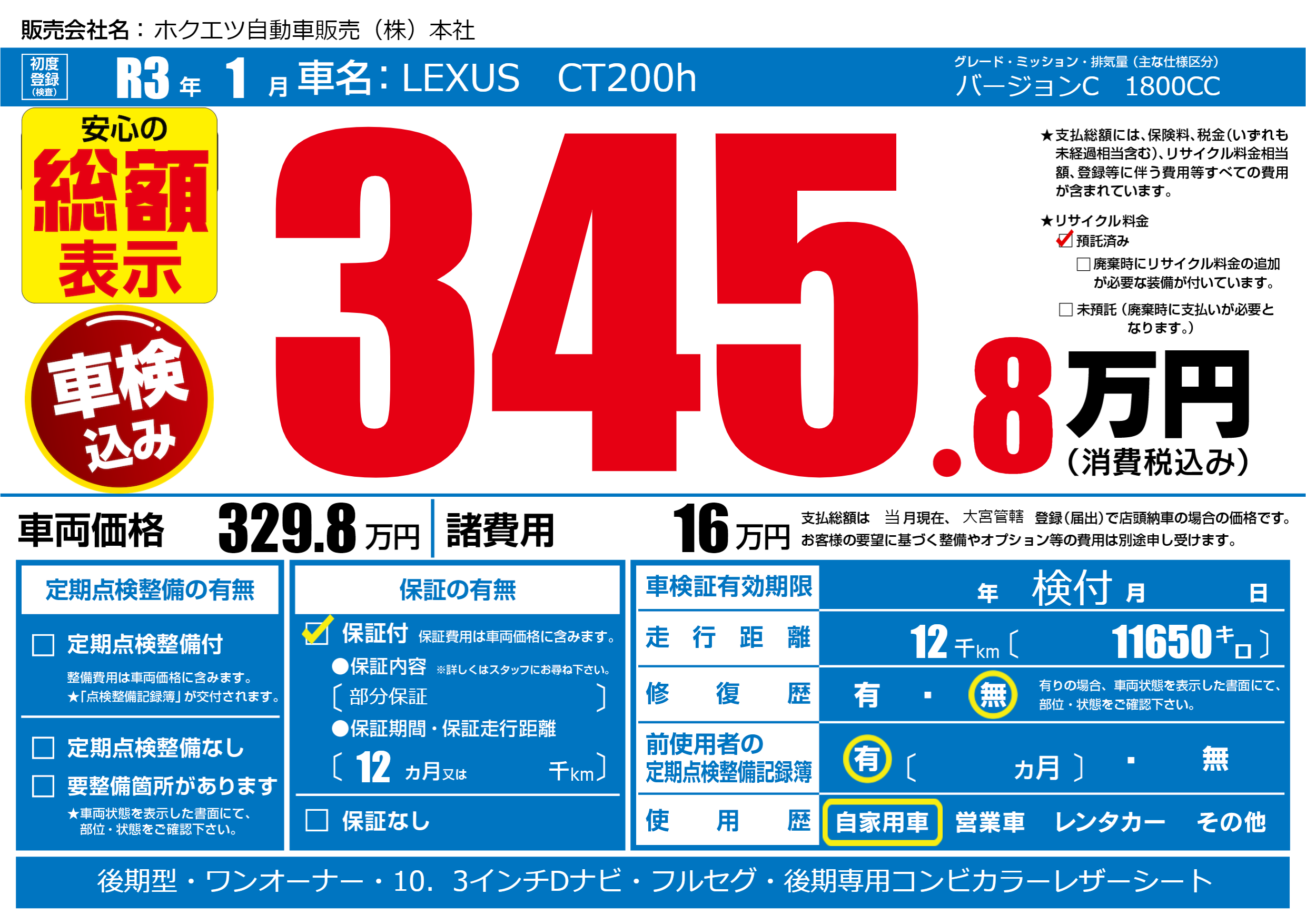 保証付き 保証内容(部分保証) 12ヶ月または()千kmまで |