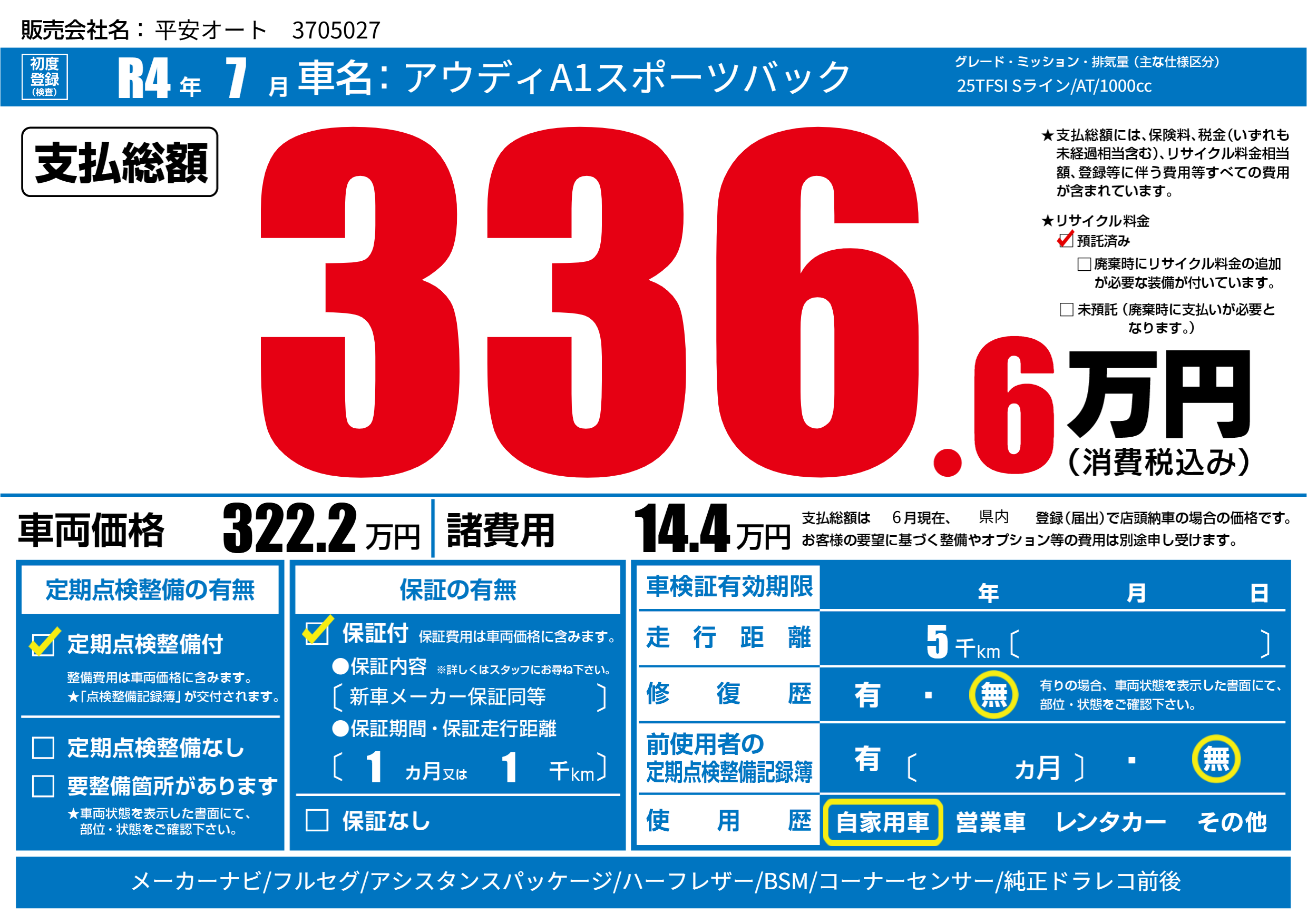 | 初年度登録 | R4年7月 | ||