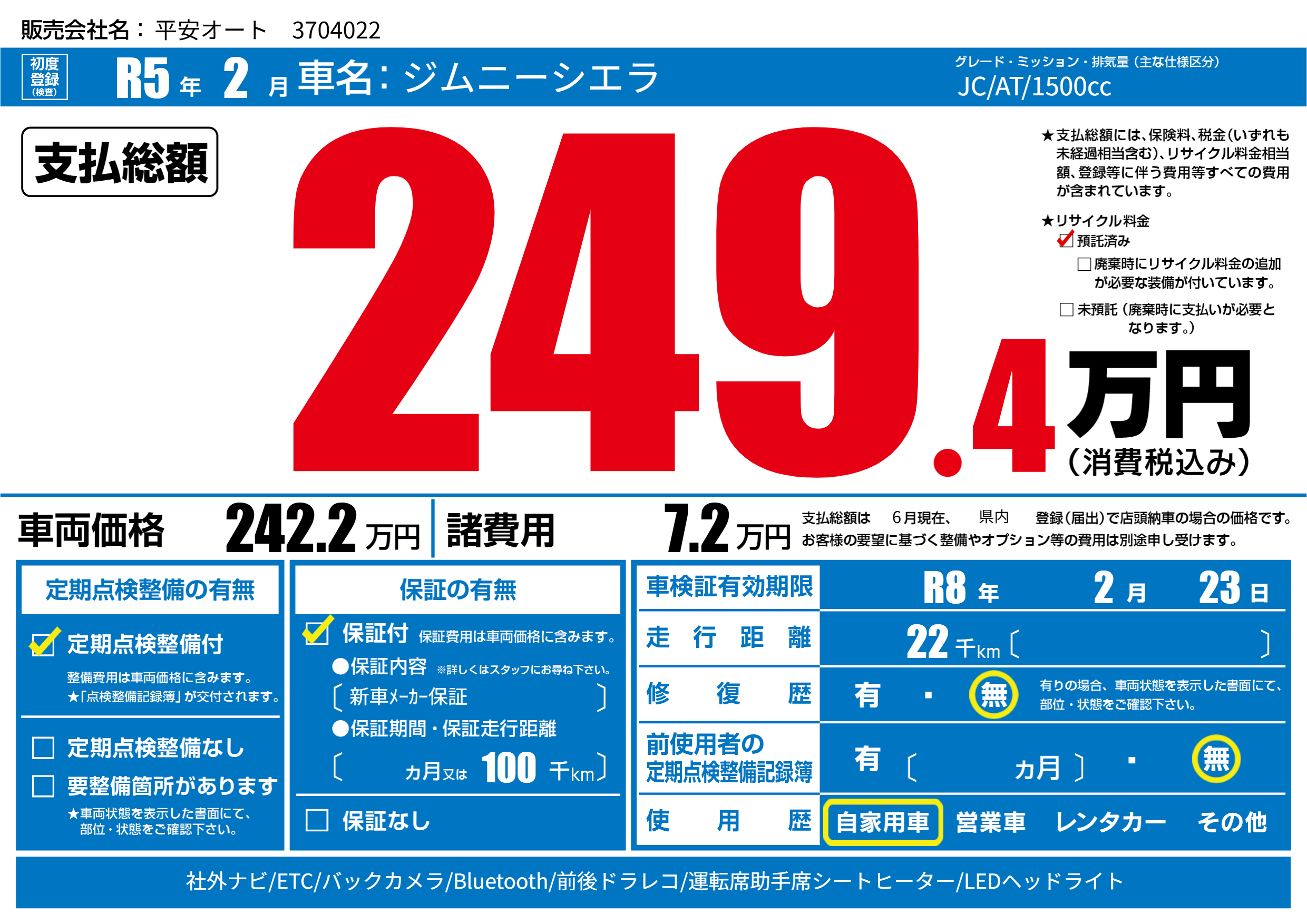 | 車検制限 | R8年 2月 23日 | ||