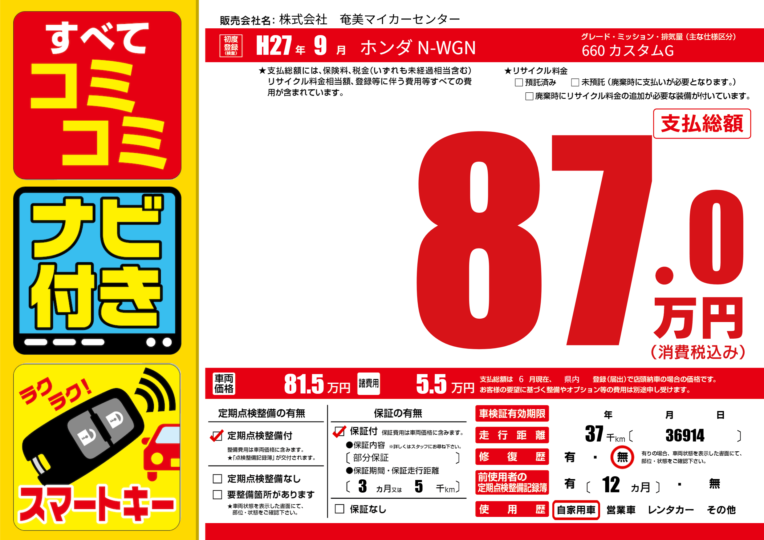 | 走行キロ | 3.7万km | ||