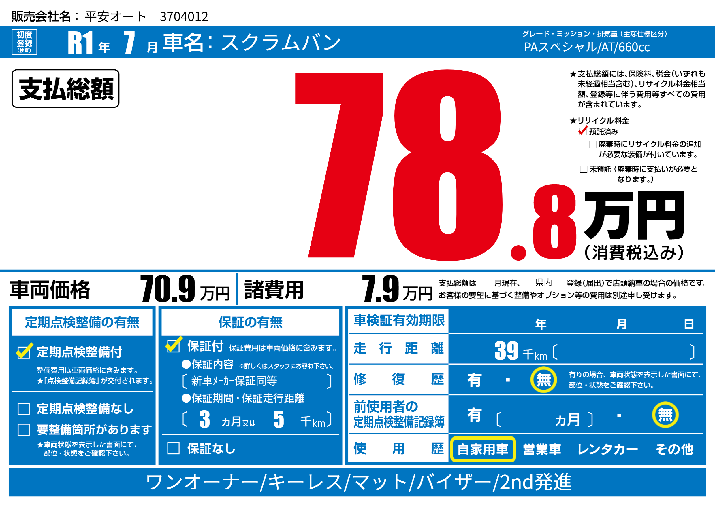 | 定期点検整備 | 定期点検整備あり | ||